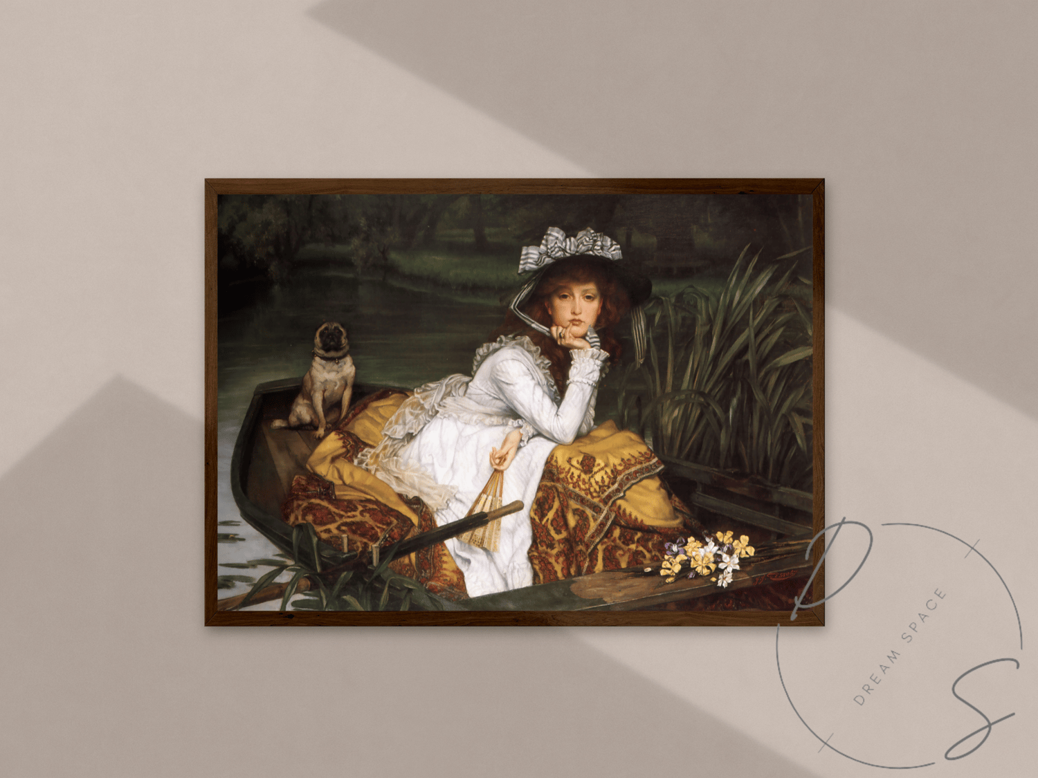 This is DIGITAL PRINTABLE PRODUCT | Instantly download and print this Young Lady In A Boat Painting by James Tissot. Original artwork 1870.