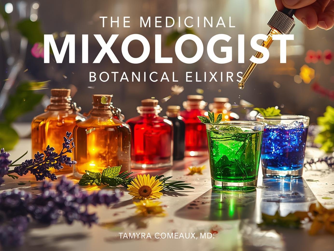 Inside, you'll discover how to harness the power of nature's most vibrant botanicals: spirulina for vitality and deep green energy, butterfly pea flower for calming blue magic that changes color before your eyes. Learn to create portable vodka-based drops that pack easily, last for weeks, and turn any glass of Seedlip and Monin into a wellness experience.