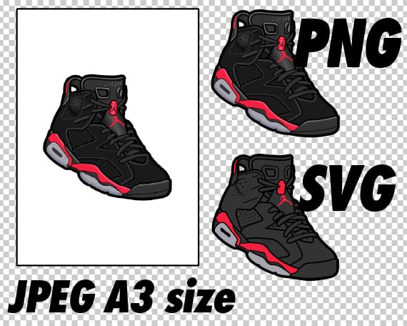 Air Jordan 6 Reverse Infrared Salesman JPEG PNG SVG digital sneaker art