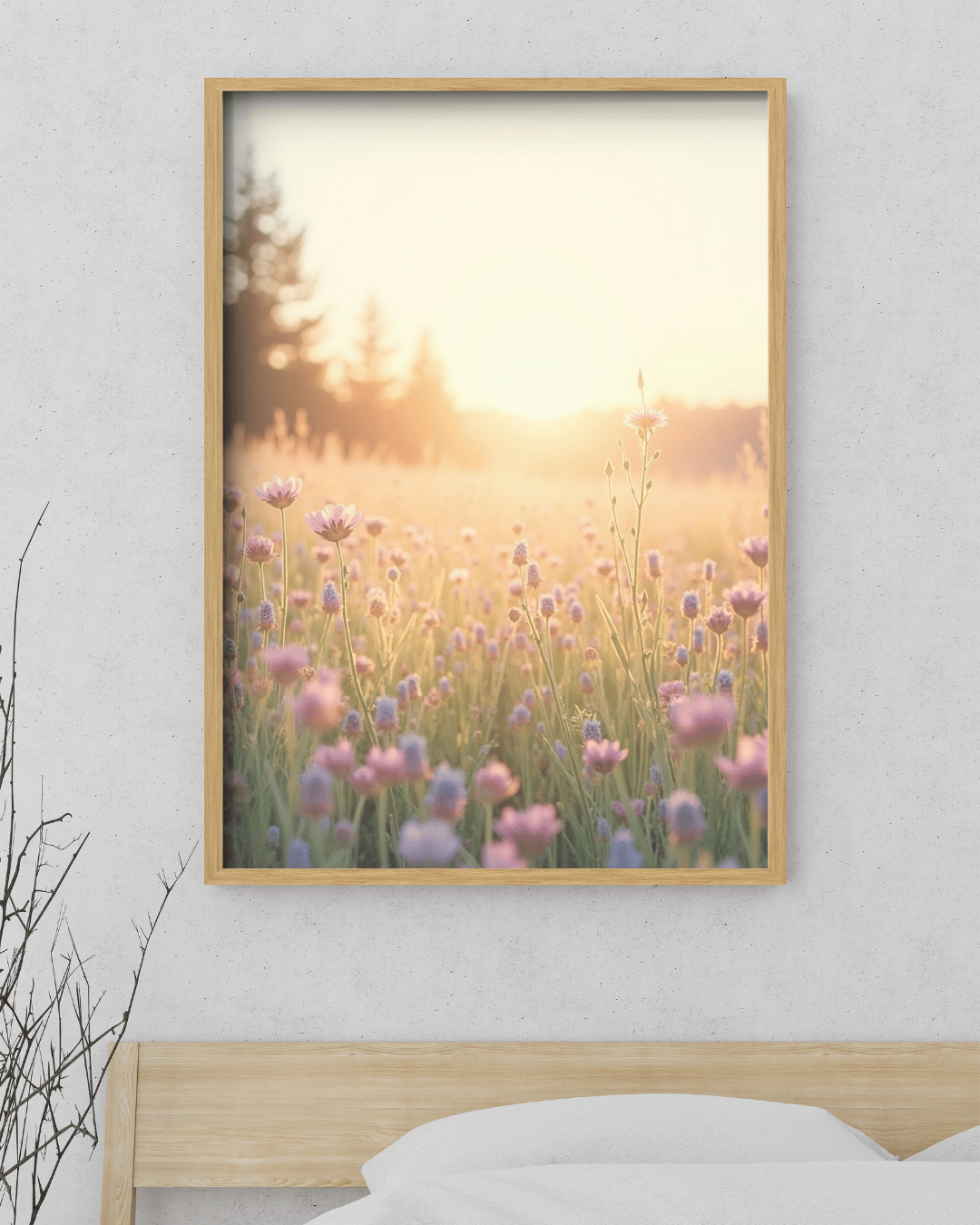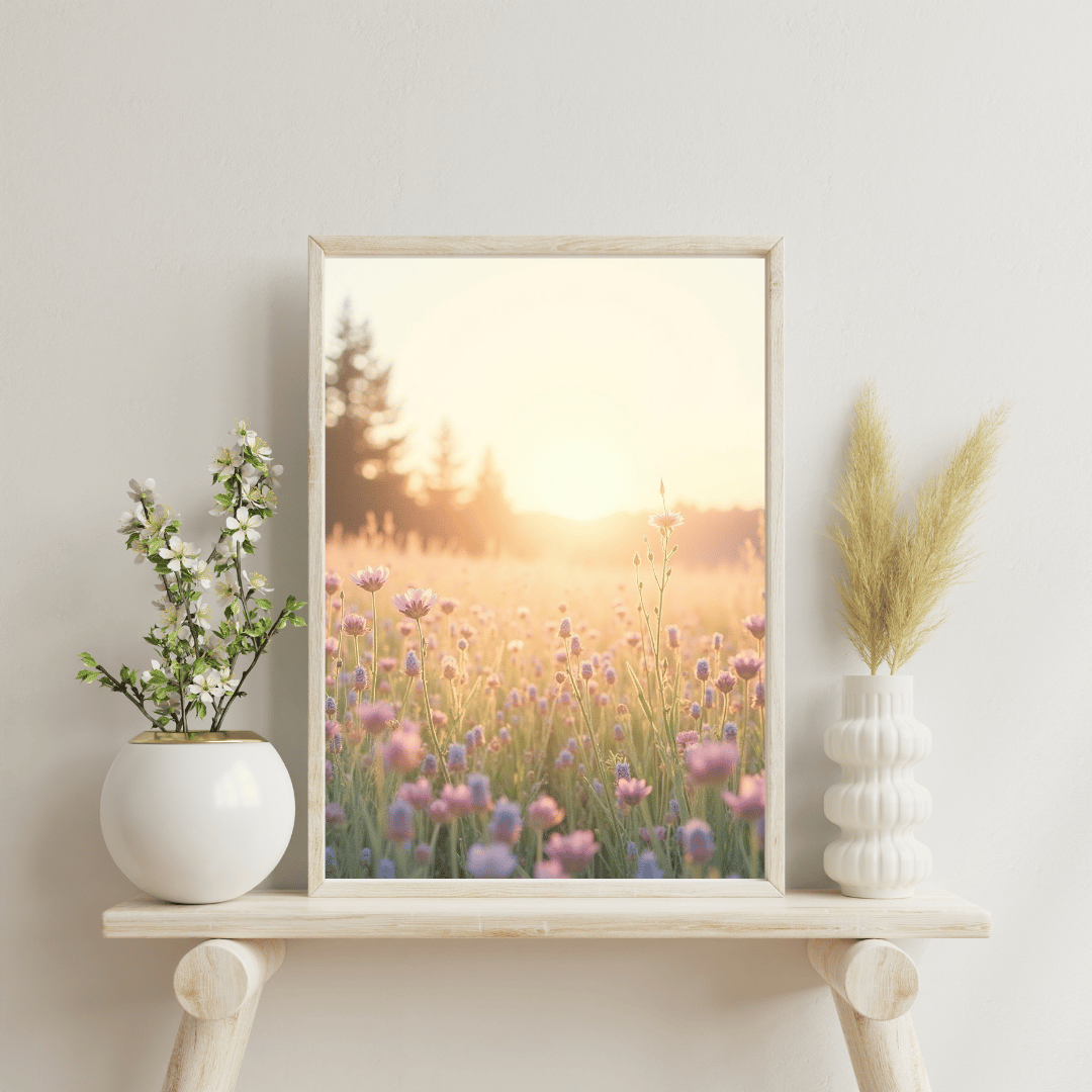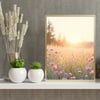 Golden Sunrise Over Wildflower Field – Dreamy Nature Art Print