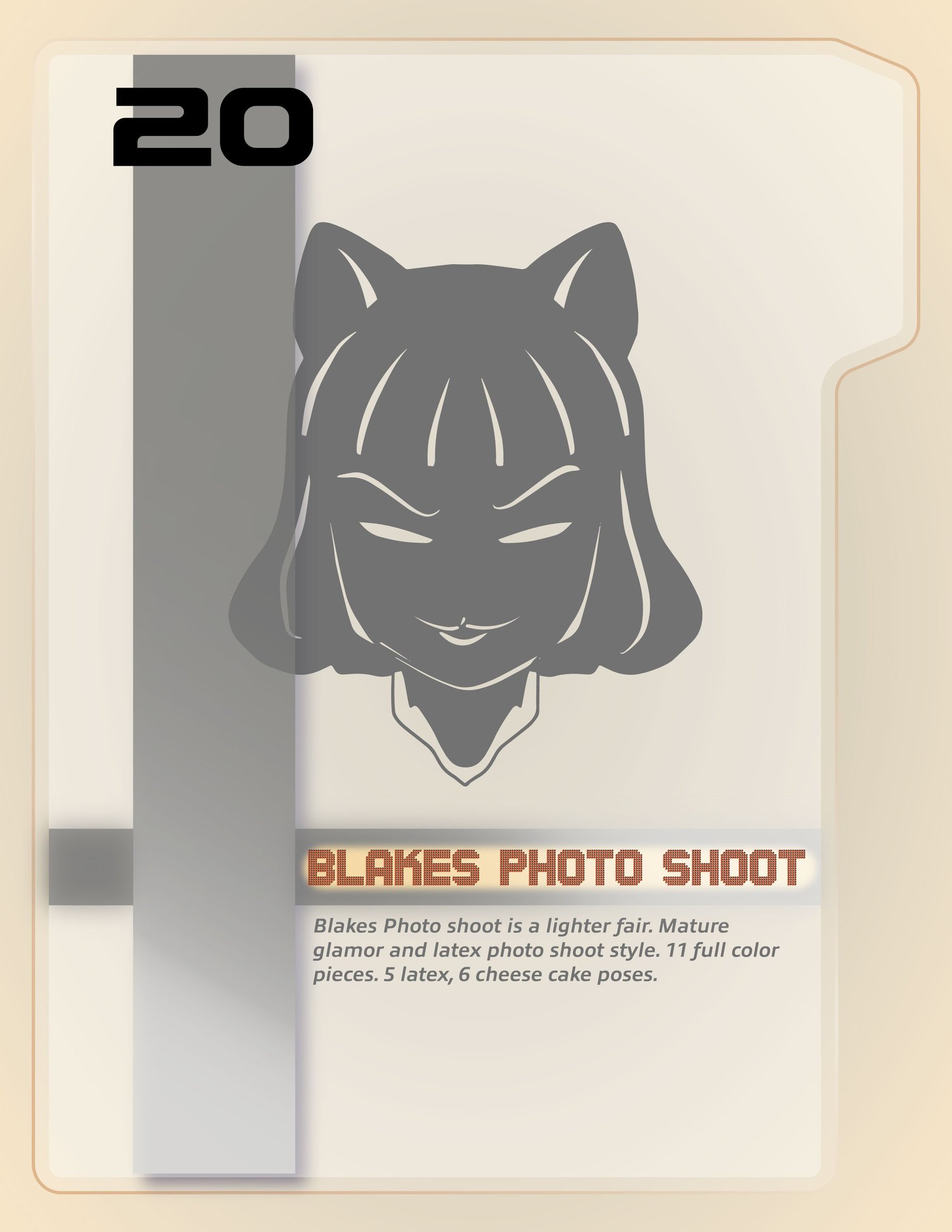 A short Glamour Cheesecake and a little cheeky set of full color drawings, with Blake posing for a photoshoot. Hand full of latex clad and the rest in cheeky cheesecake poses. A tame set of drawings concentrating on color and pose.