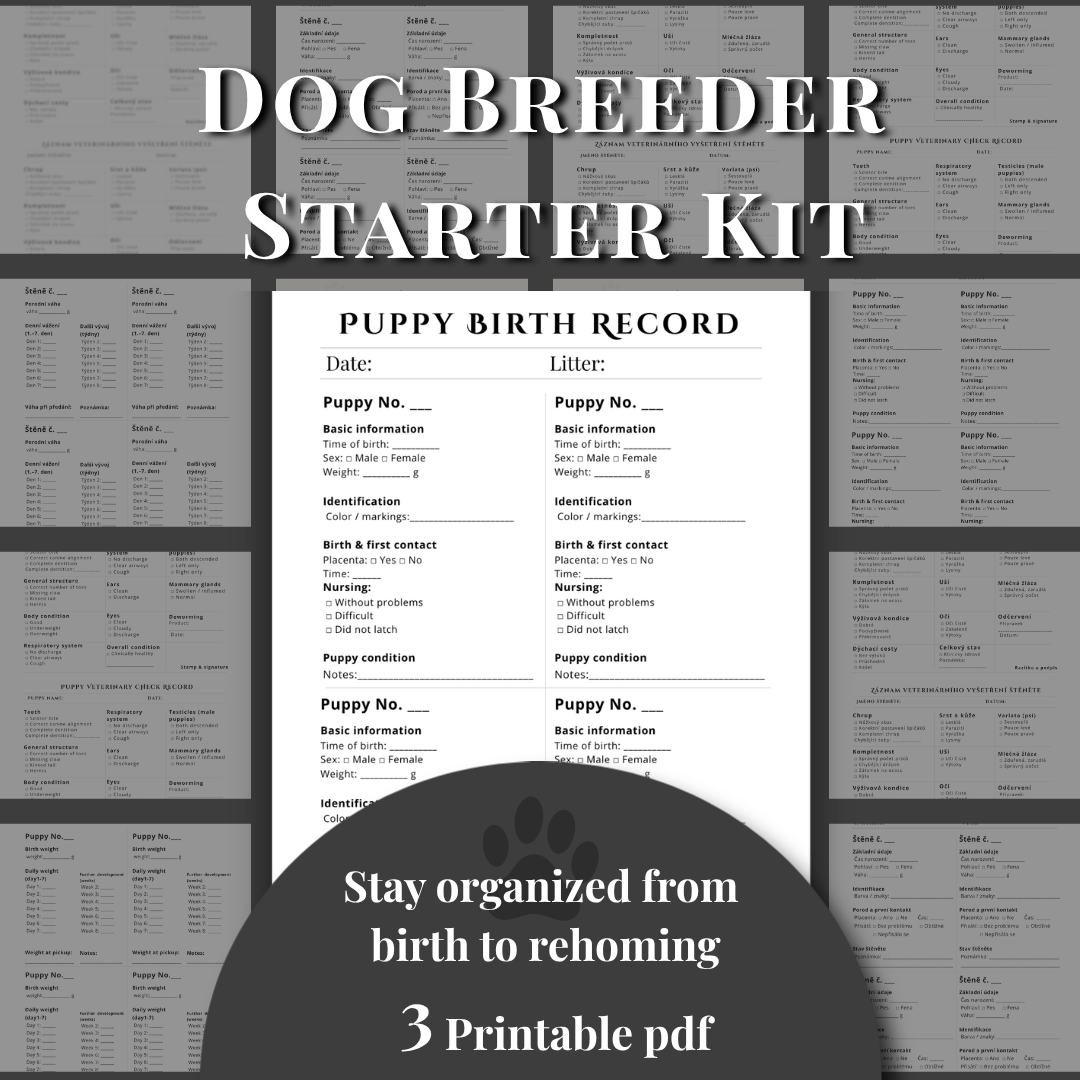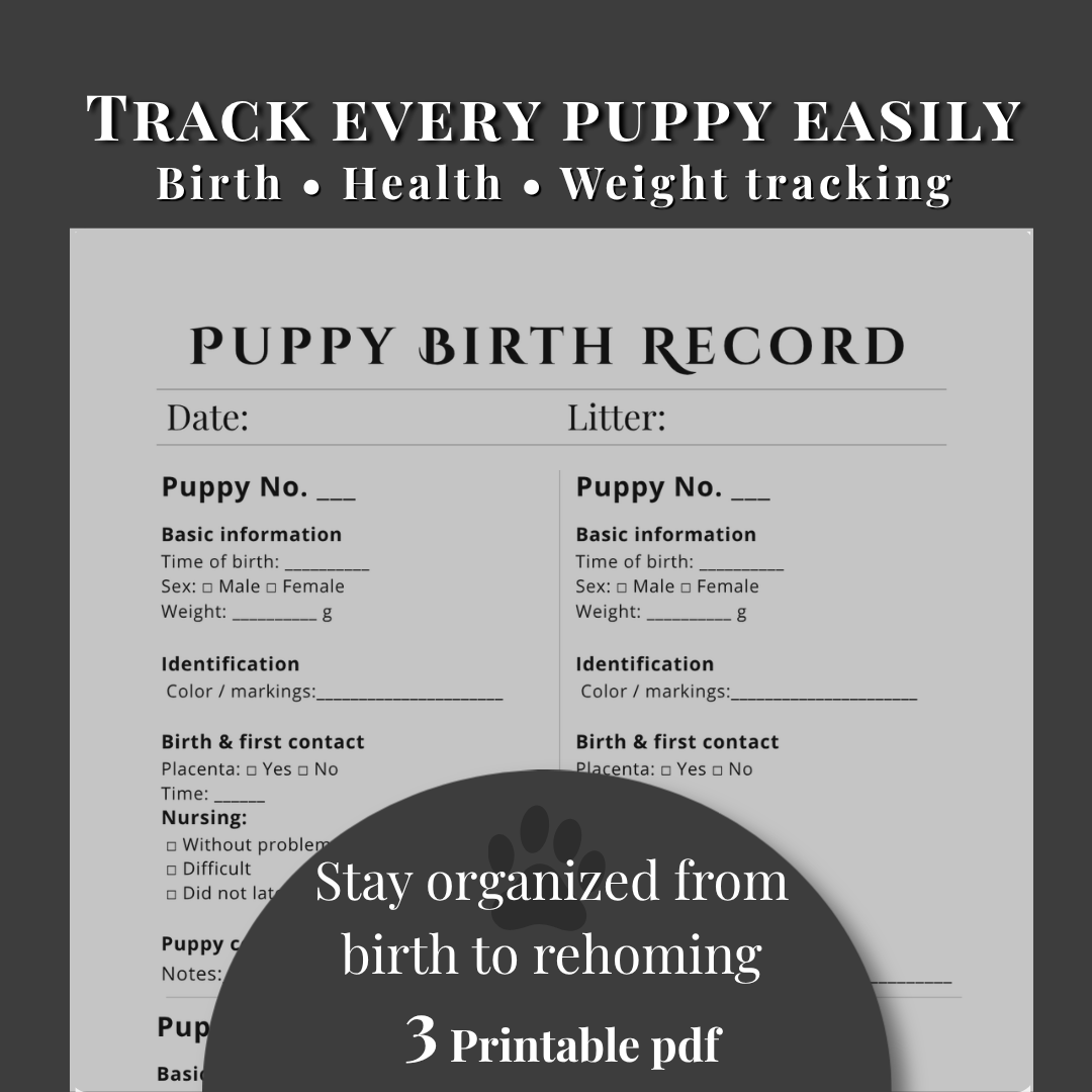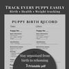 This bundle includes practical tracking sheets to help you manage each puppy from birth to rehoming with ease.