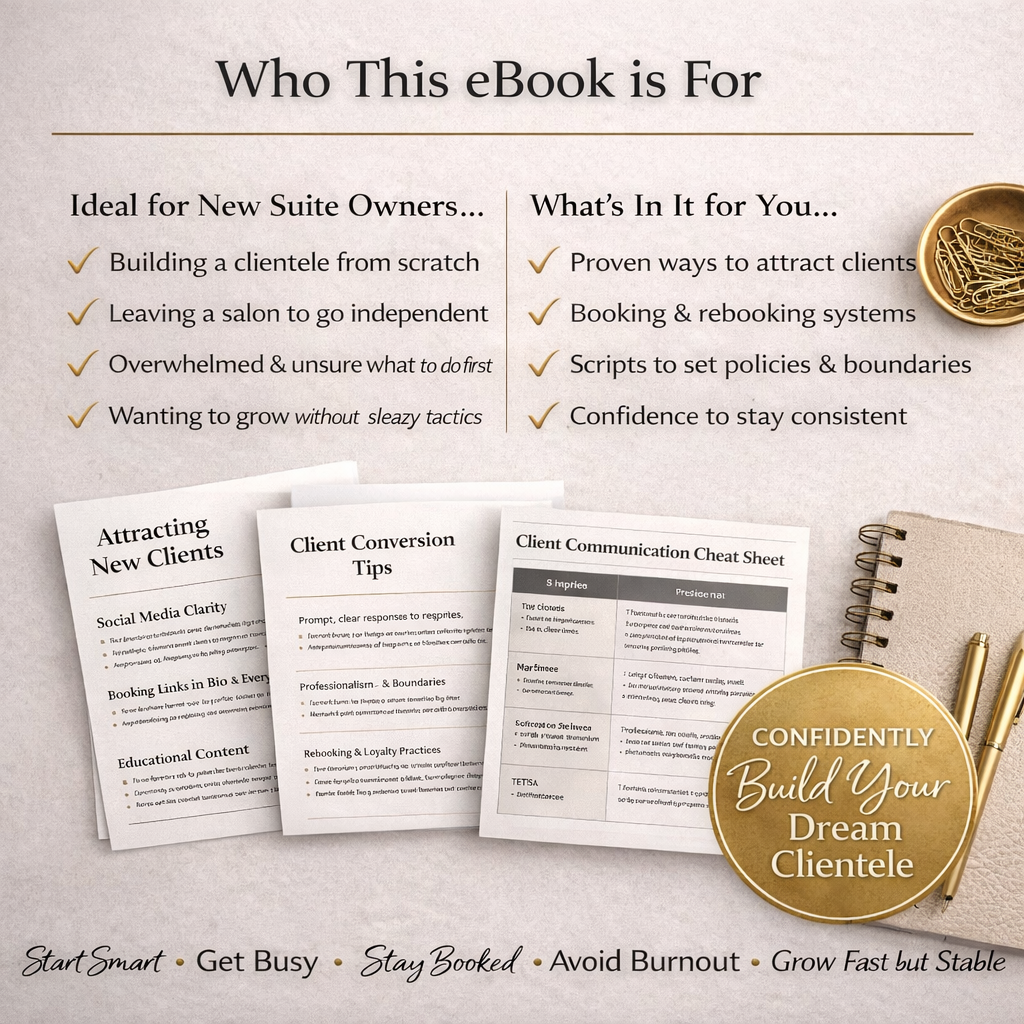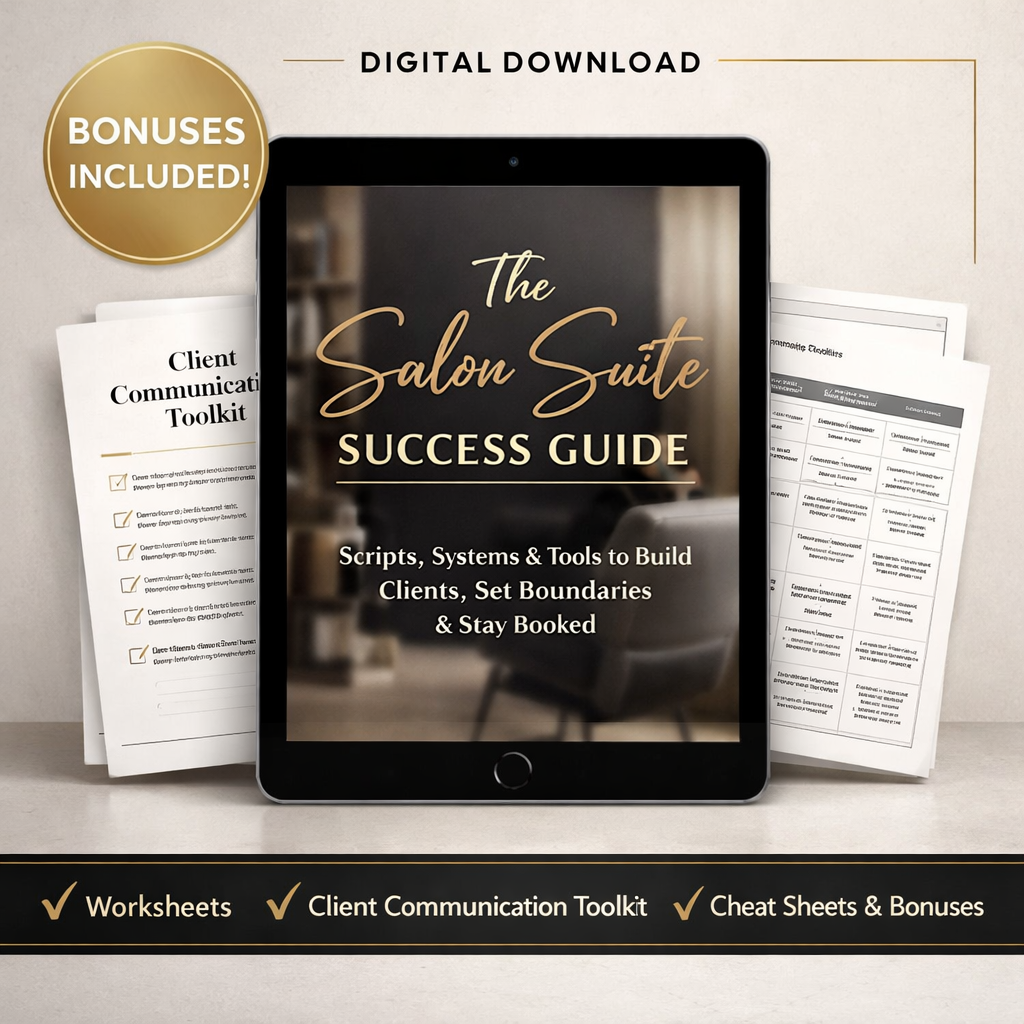 The Salon Suite Success Guide (Coaching Edition) gives you the exact scripts, systems, and tools to protect your peace, elevate your client experience, and keep consistent clients who respect your time.