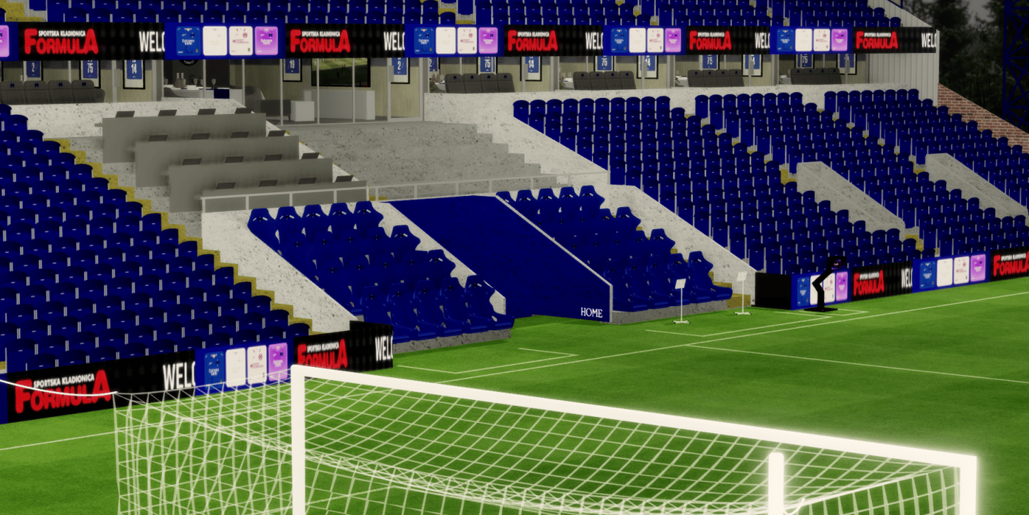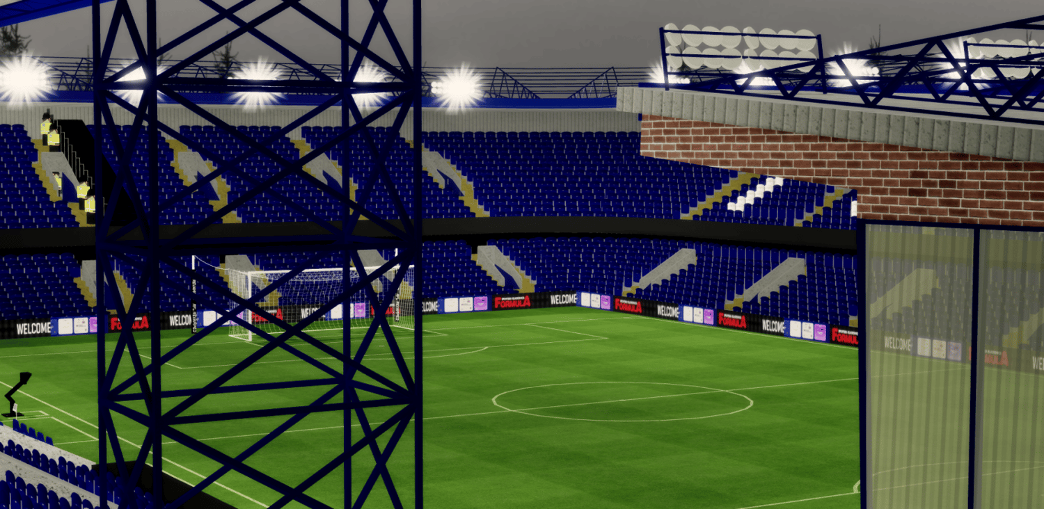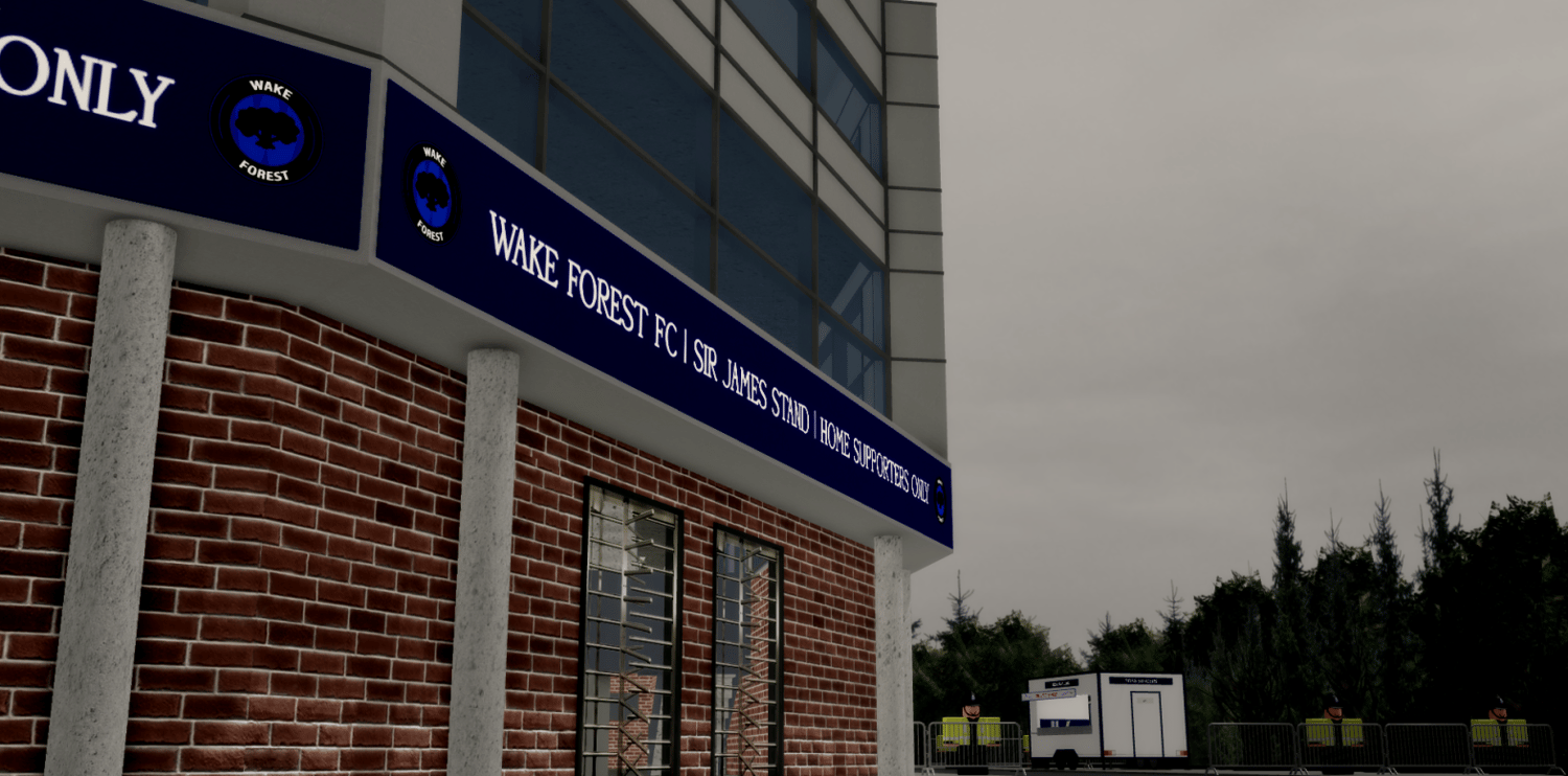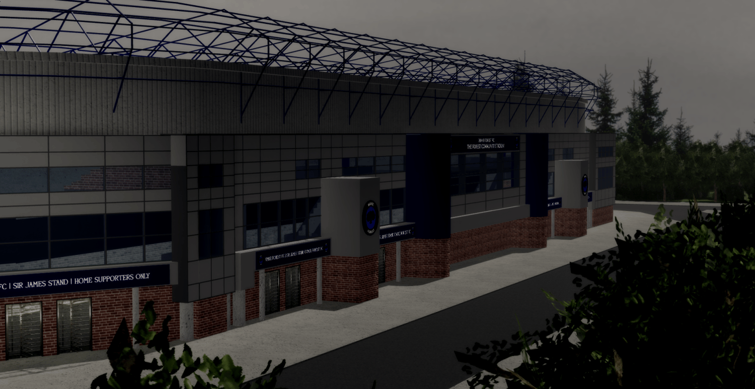 > This is a fictional football stadium that spans a massive 740 x 510 studs. The map includes plenty of seating areas for fans, along with a spacious entrance area. It also features dedicated match officials' zones, including separate home and away locker rooms for the teams.