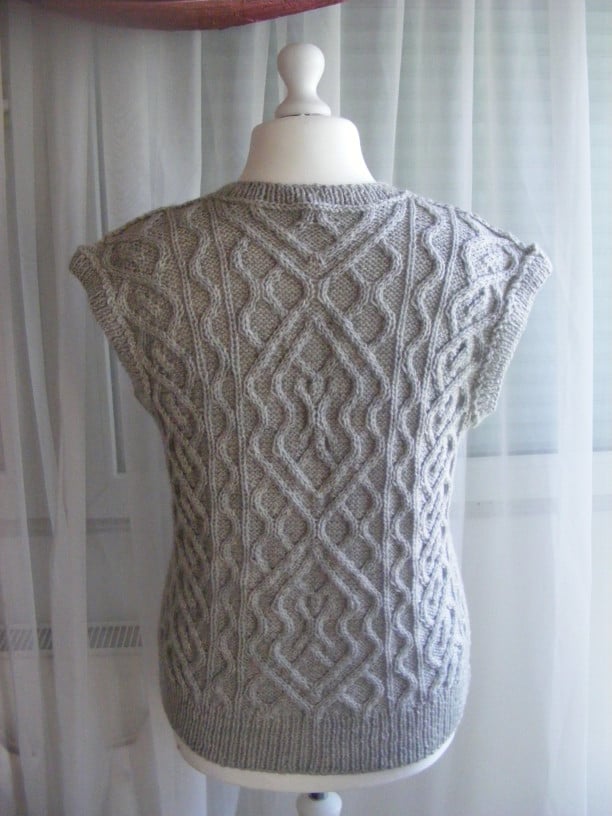 This vest is light and delicate. It shows the samples of floating cables, organized the way of classic cable jumper. As it's seen - the classic cables can be successfully replaced by floating cables, giving the interesting result.