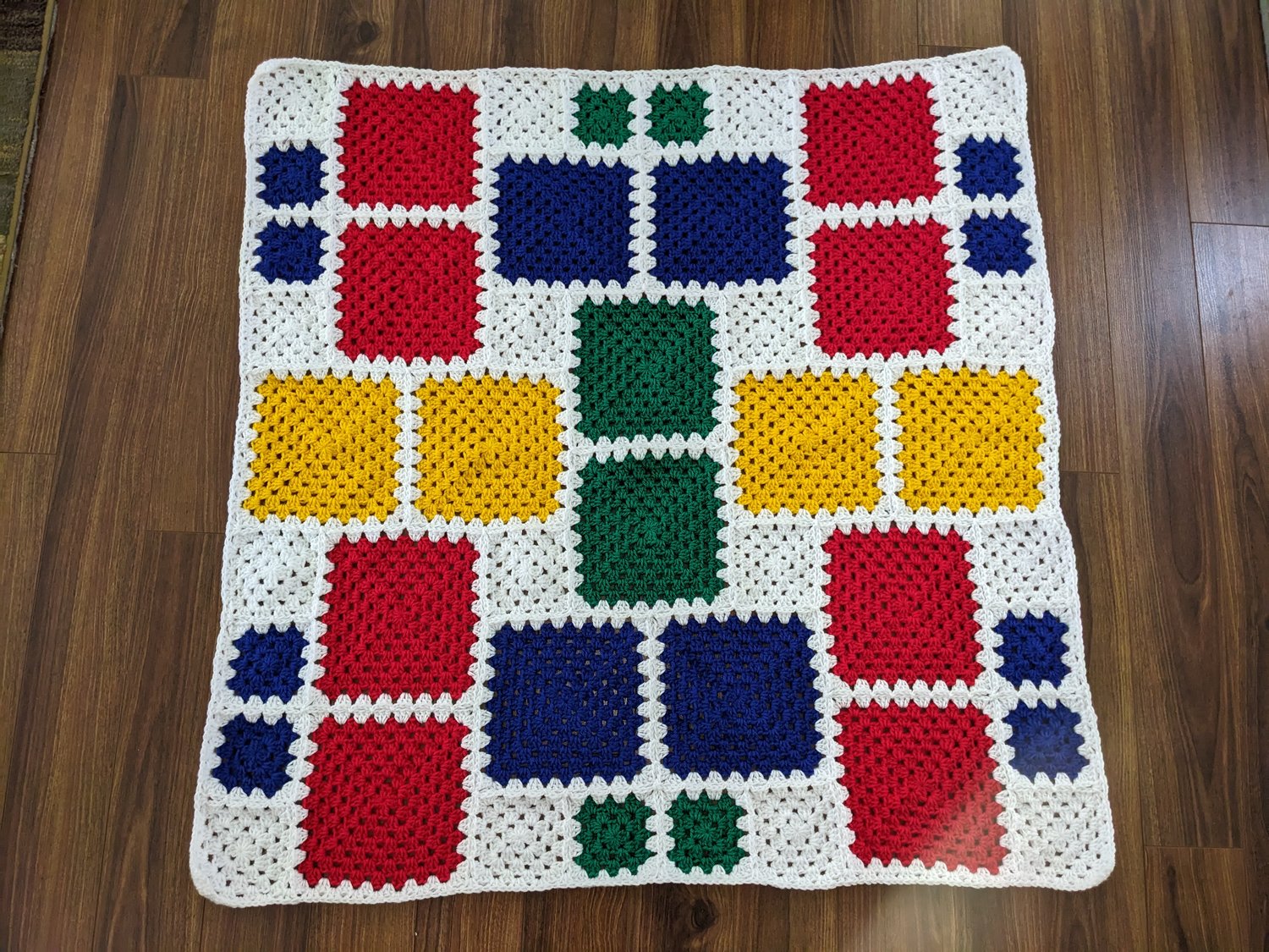 Size/Gauge: Approximately 10.7 times bigger than your 3-round square. Sample measures 43” square.