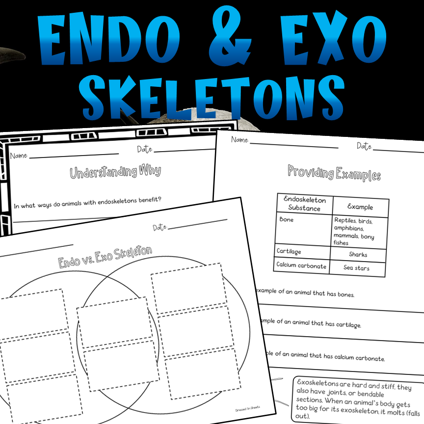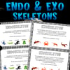 Let's learn about exoskeletons and endoskeletons. This resource will have handouts for the class to have the definition of each and show example of animals. They will get to look at different creatures and decide whether the animals presented have endo or exoskeletons and compare the difference between the two. Get the kids thinking of how having an endo or exoskeleton benefits the creatures who have them with the included writing acitivity. Add the activities included to your lesson plan to cement their learning!