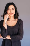 We all swooned when we saw this duster—it has such an impact and looks amazing on every height, whether the low back hem reaches the high calf, or goes all the way down to your shoes. The deep scoop neck and slim, bracelet length sleeves are so flattering, and Sparrow’s amazing drape is showcased in the front and back color block panels.