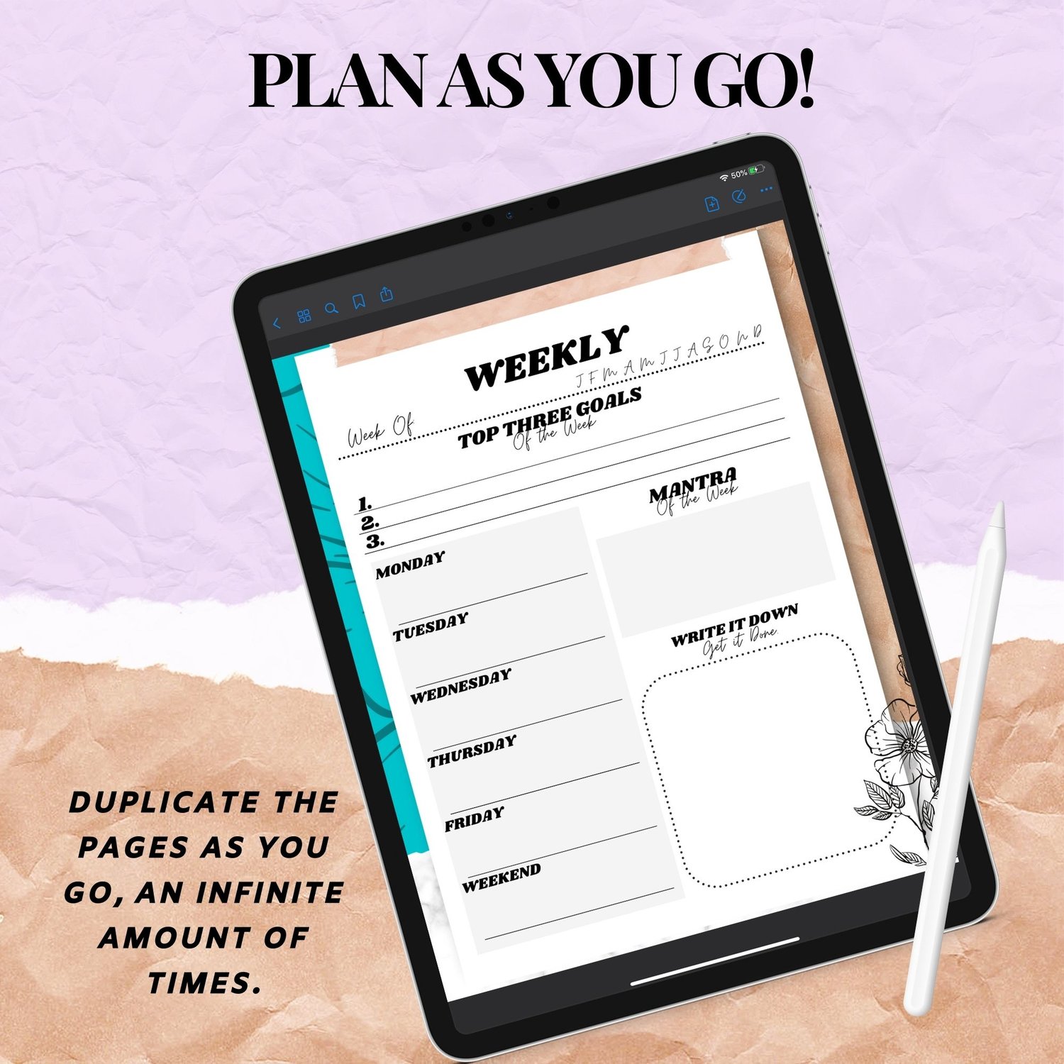 The tablet, stylus and Apps required to use this planner are NOT included in your purchase.
