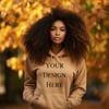 African American Woman, Blank Tan Hoodie Sweatshirt Mockup Photo, Autumn Background