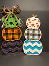 Our Crazy Pumpkin is 18" tall and can be order 4 ways! Painted as a door hanger to greet you're guest or as a Standing Crazy Pumpkin. It's also available Blank so that you can add your own colors and touches to it! You can order Crazy Pumpkin Blank as a door hanger or or a Standing Crazy Pumpkin. Either way this one is soooo much fun and tops skies are endless!