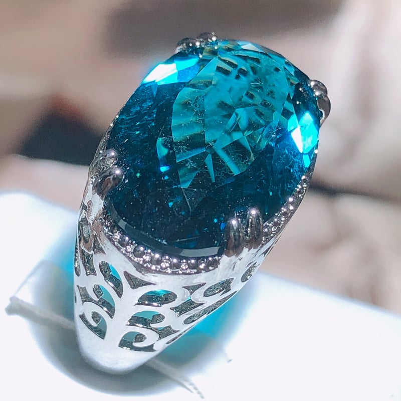 Oversized Blue Zircon Ring for Women – 925 Stamp, Large Stone Party Gift