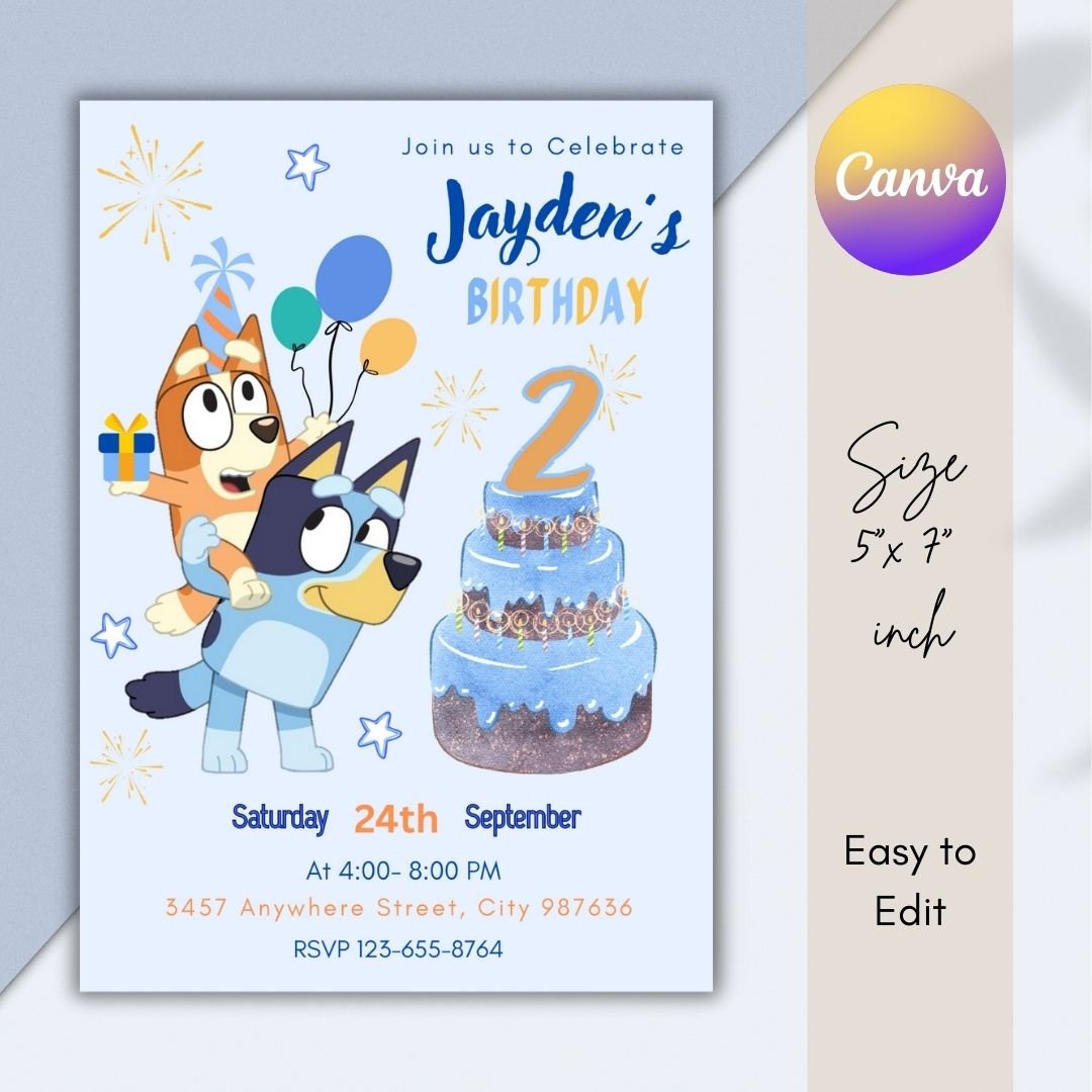 Make your little boy’s birthday extra special with this adorable Bluey birthday invitation! 🎉 Perfect for any Bluey-themed party, this editable and printable template lets you customize the details easily using Canva.