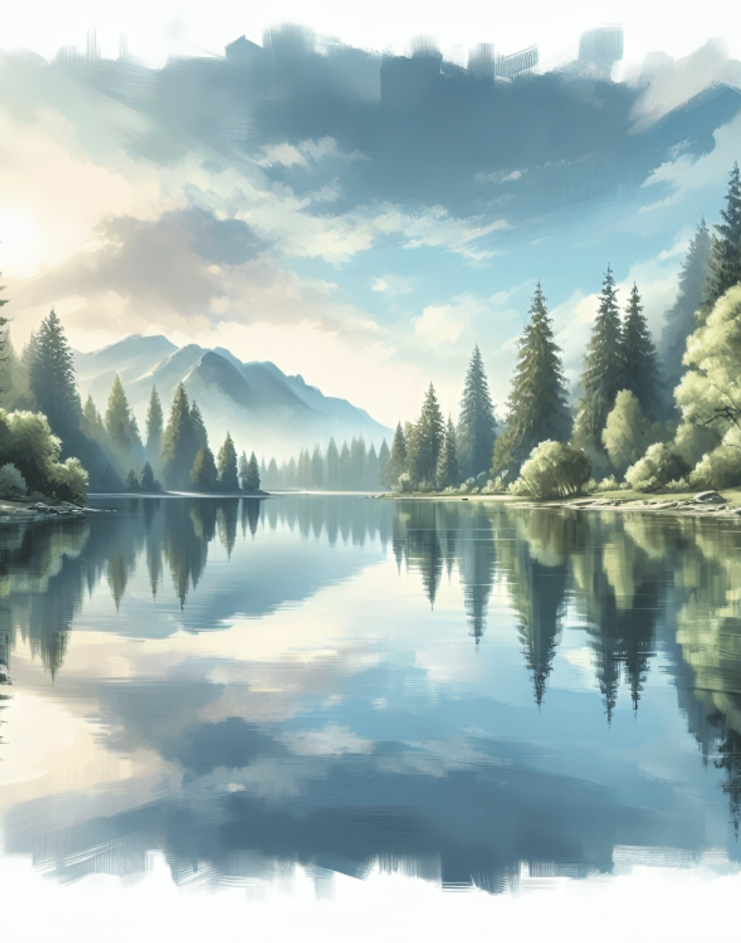 Serene Lake Painting, Lake Forest landscape, Dusk, Vintage Landscape, Nostalgic Nature, Cool Nature, Rustic natural Landscape, Painting.