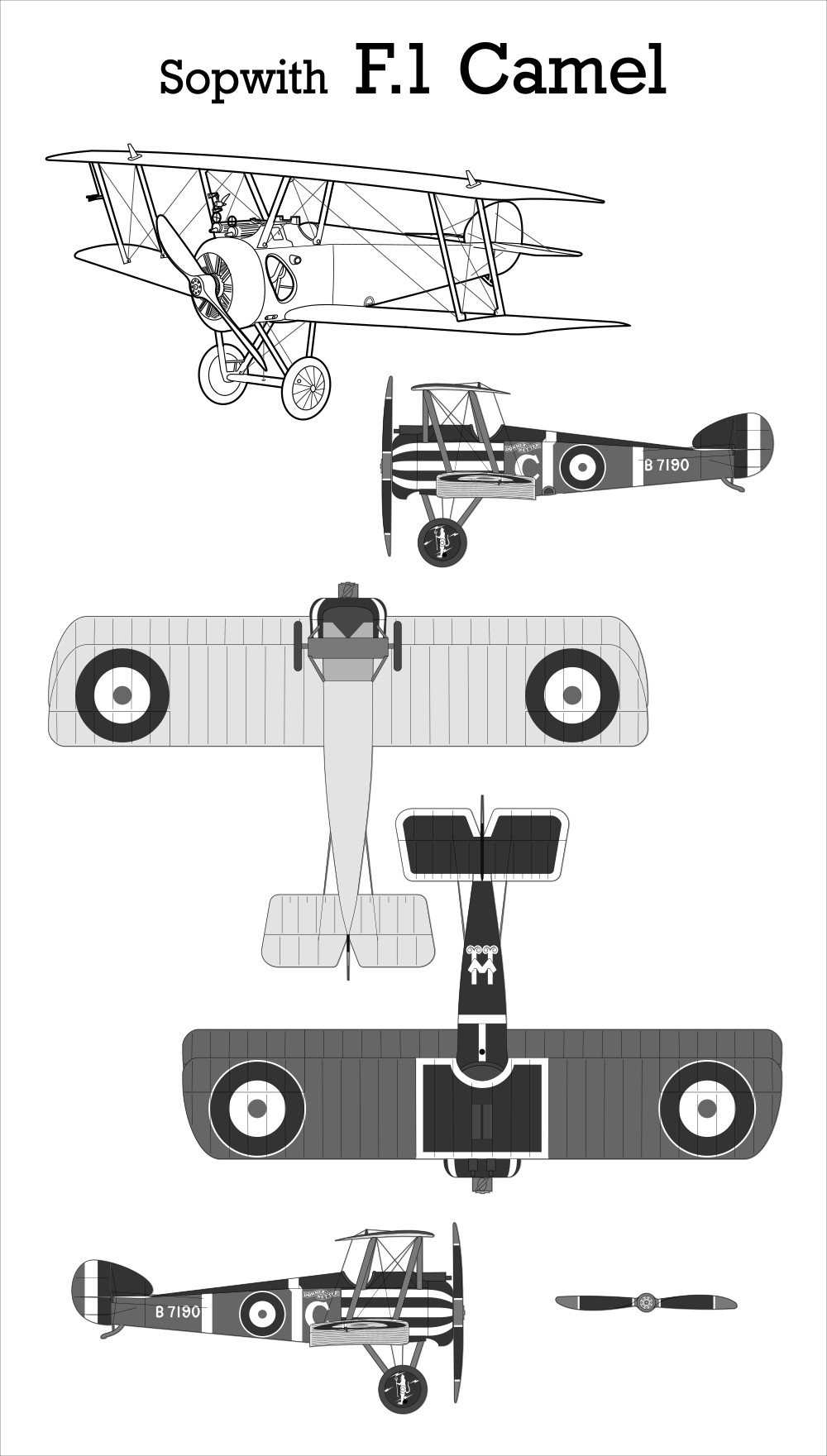 Sopwith F.1 Camel Aircraft Blueprint PDF SVG Vector Drawing