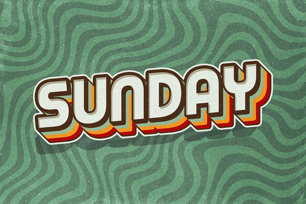 Bold retro vintage style characterized by thick, blocky lettering with a soft off-white fill. Combines bold retro colors, layered shadows, and distressed textures to create an authentic vintage aesthetic.