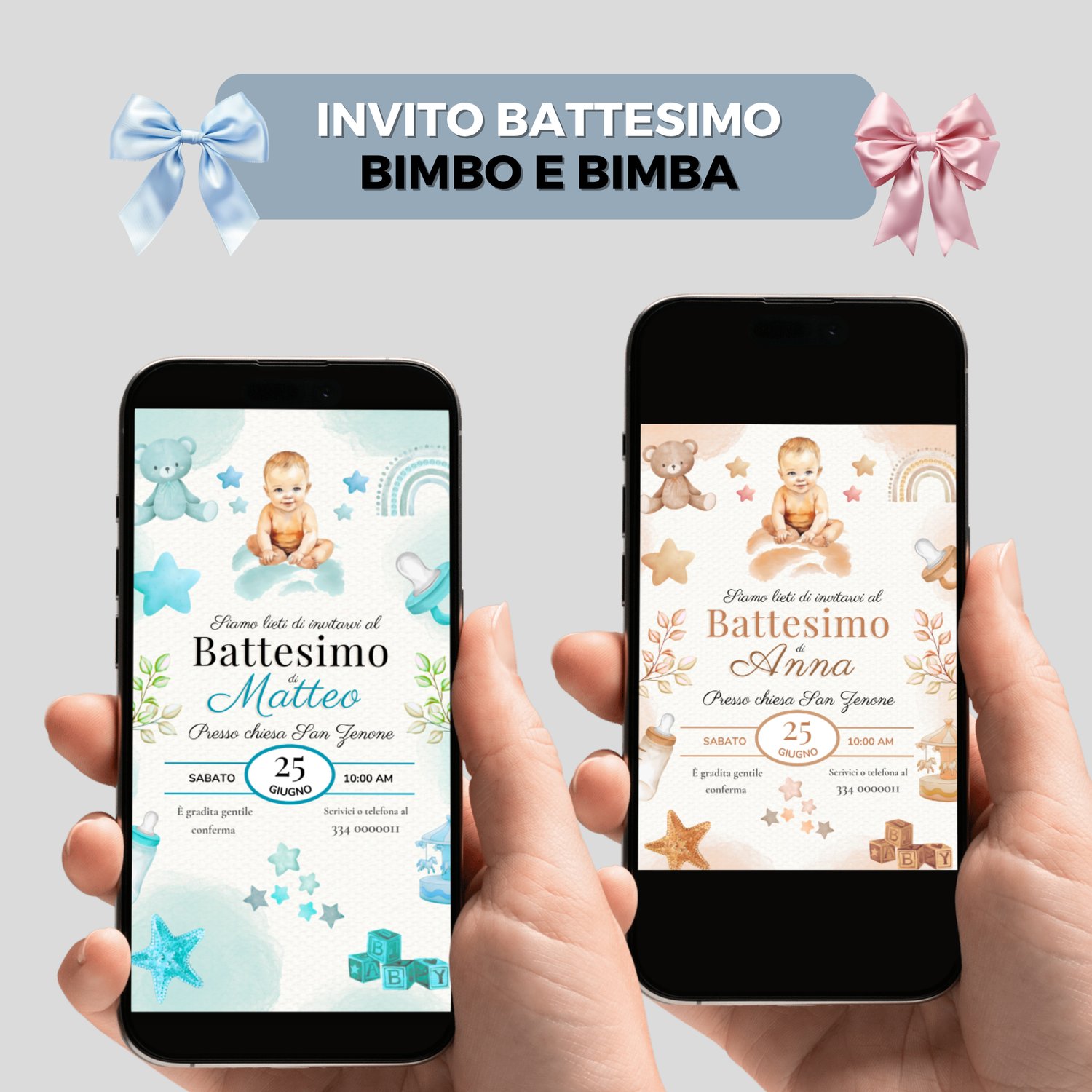 Invito battesimo digitale e stampabile per bimbo e bimba