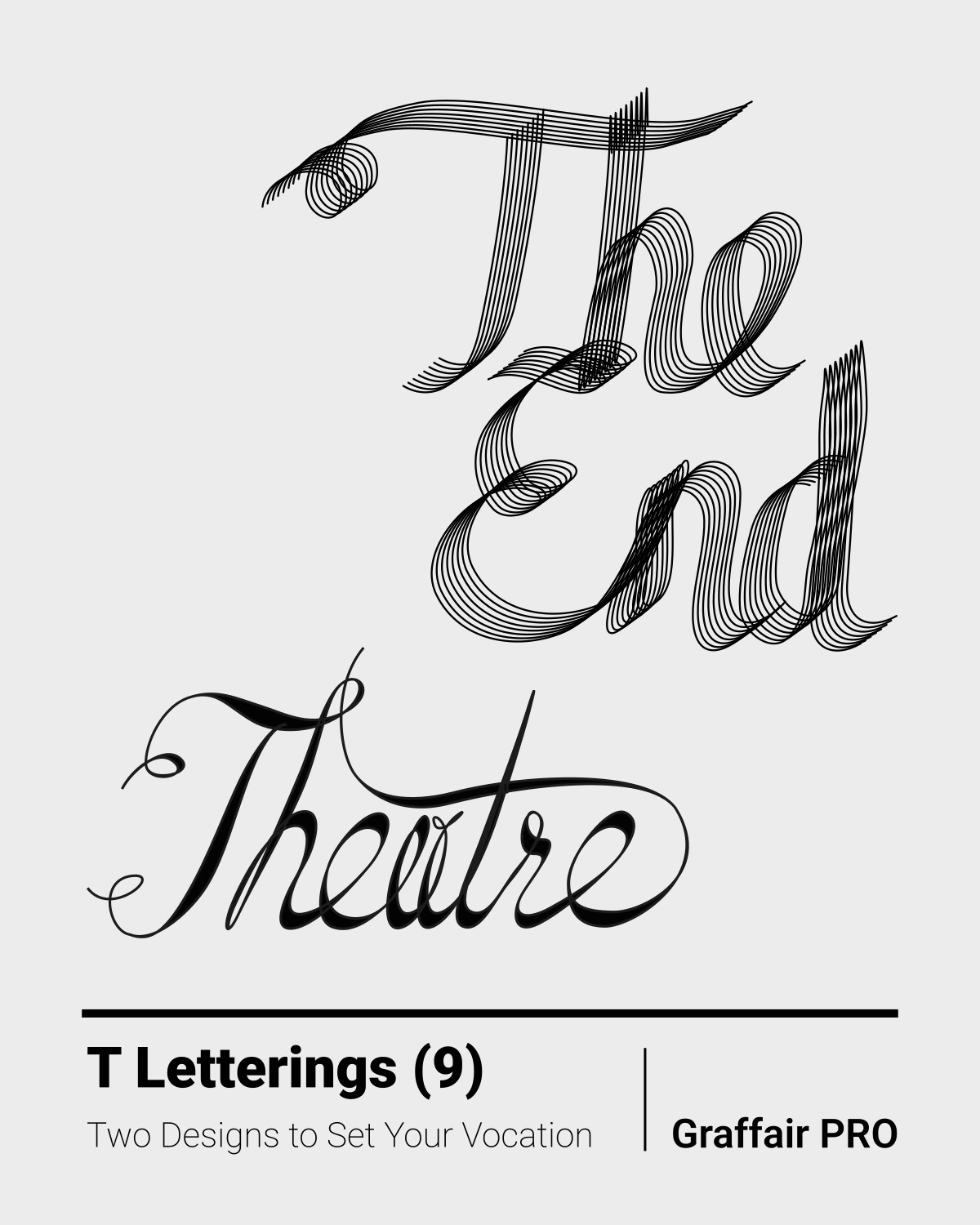 T Letterings (9): The 9th set of two original "T" logo lettering designs to edit and evolve your typography on your visual branding project. These letterings are part of the "800 SVG Letterings" bundle.