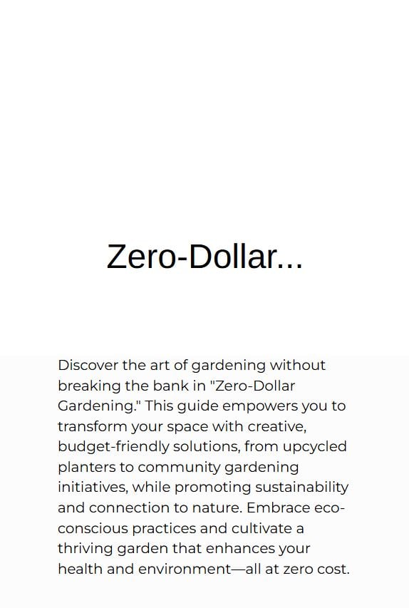 Zero-Dollar Gardening is a 122-page practical digital guide that shows you how to grow food, support wildlife, and create beautiful green spaces using items you already have.