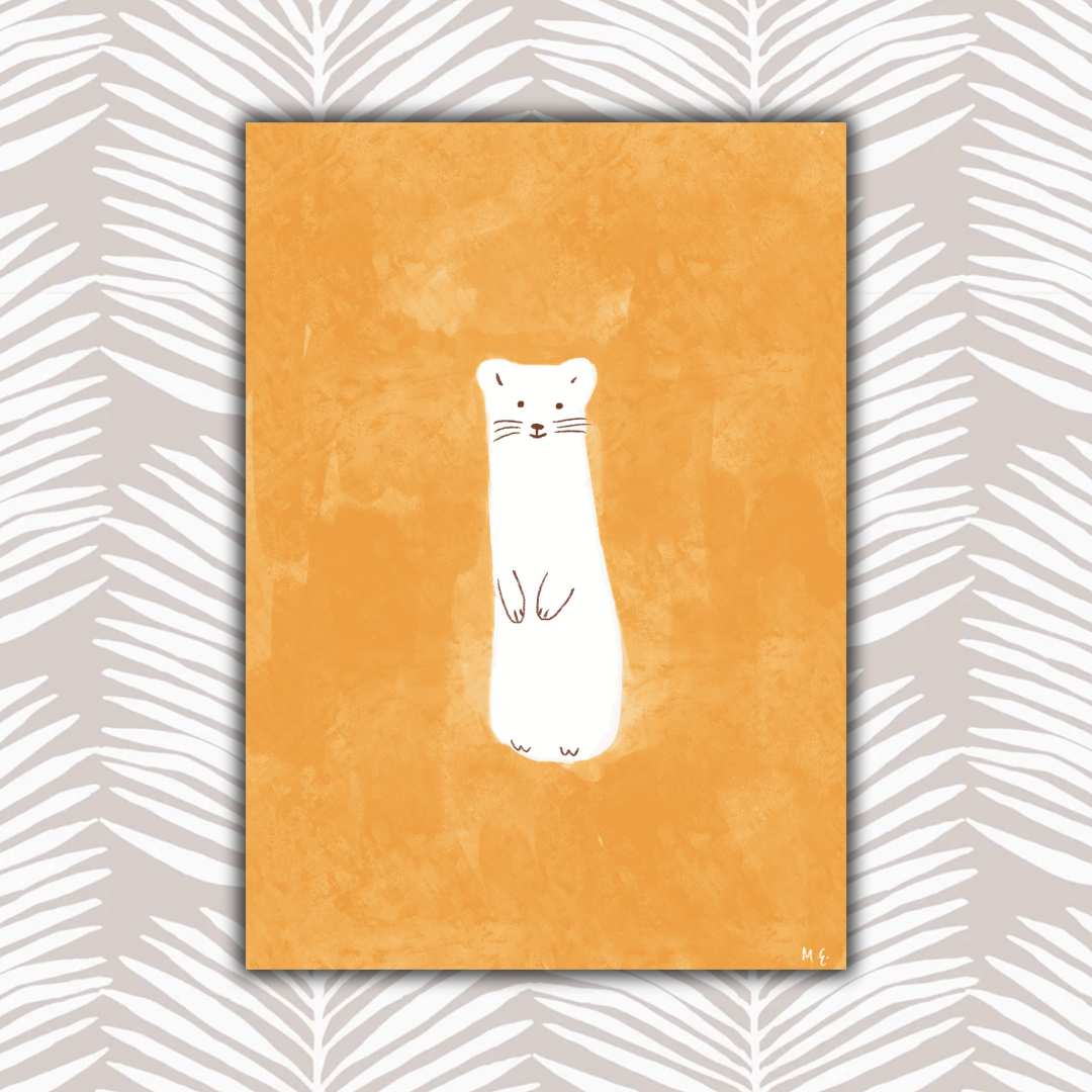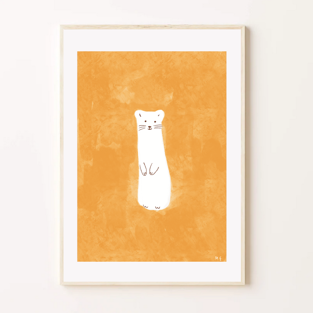 This minimalist illustration of a Pine Marten brings a sense of playful curiosity and sweetness to any place. Looks beautiful in natural wood frames or styled on soft, snowy or neutral backgrounds. Ideal as a soulful gift for a tender heart.