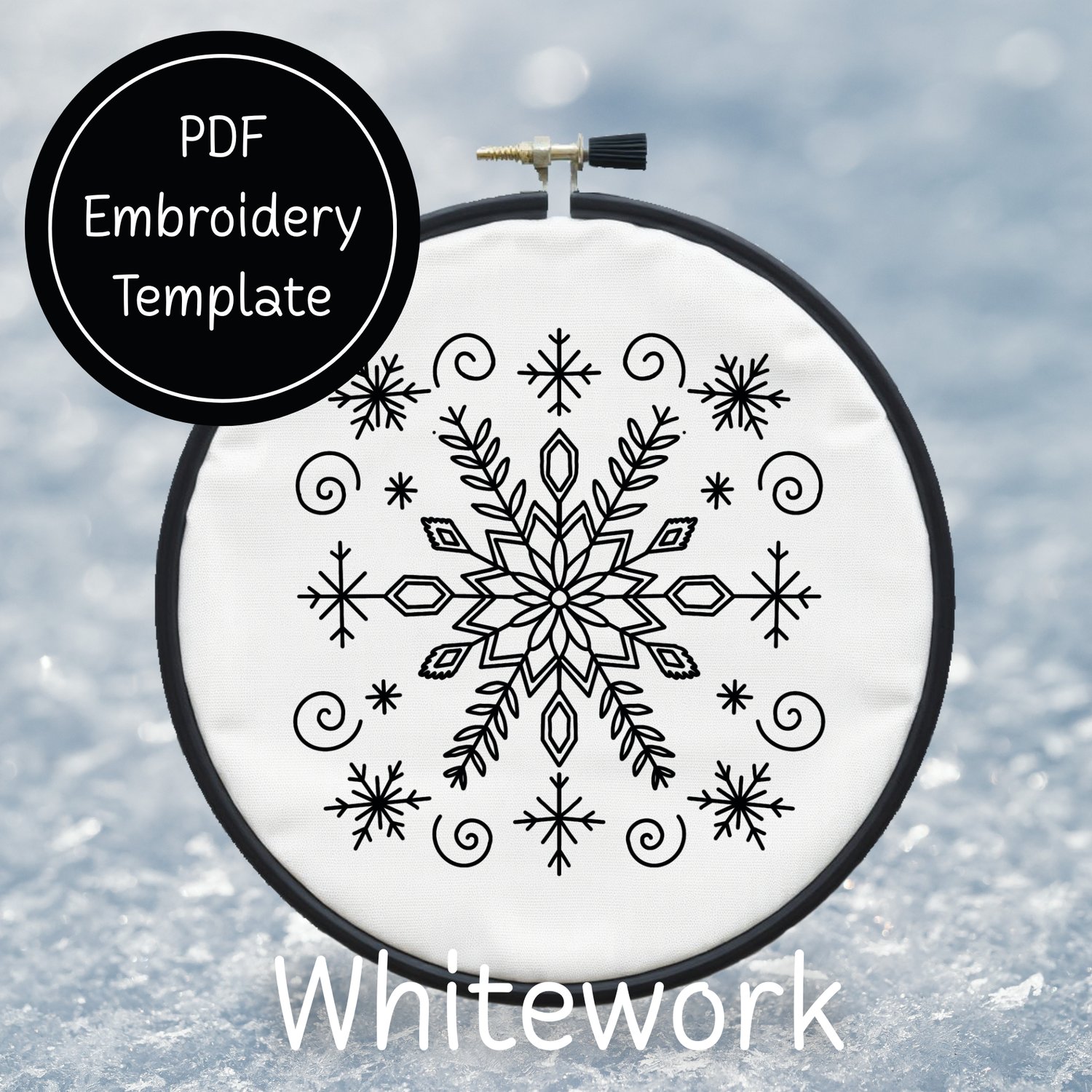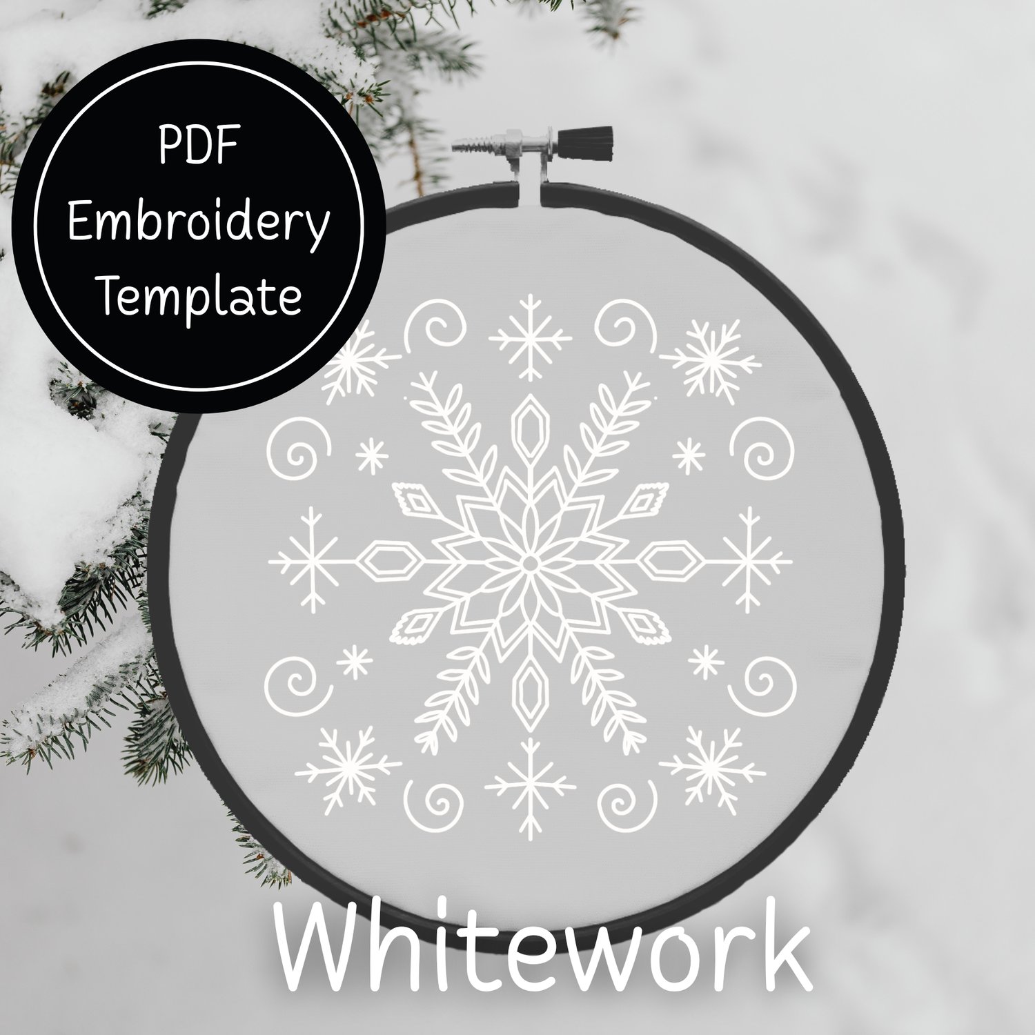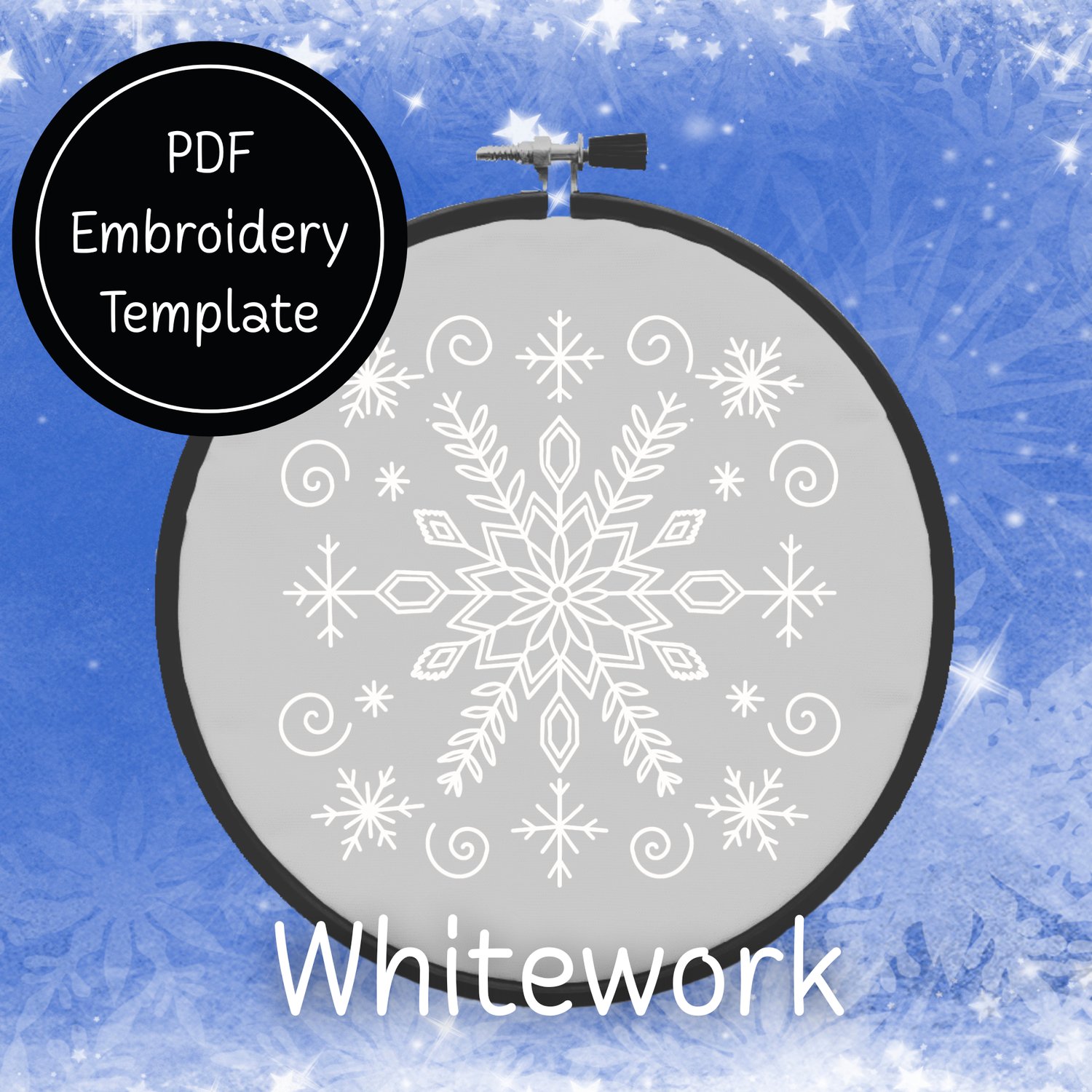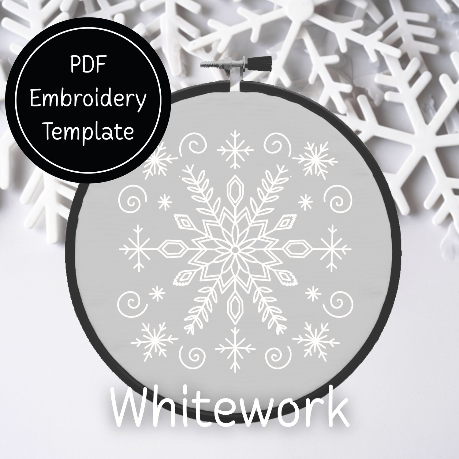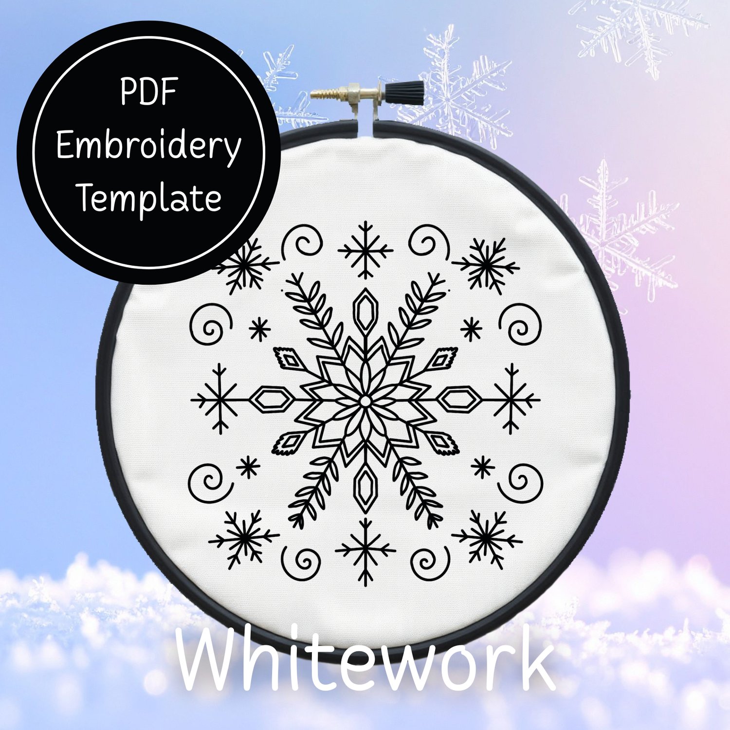 Whitework Snowflake Hand Embroidery Template - Instant Download