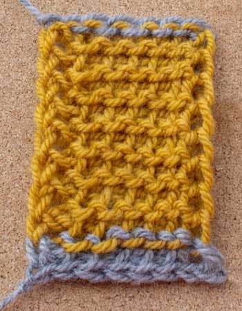 Tunisian crochet looks similar to knitting, however, it produces a thicker fabric and is worked with a hook.