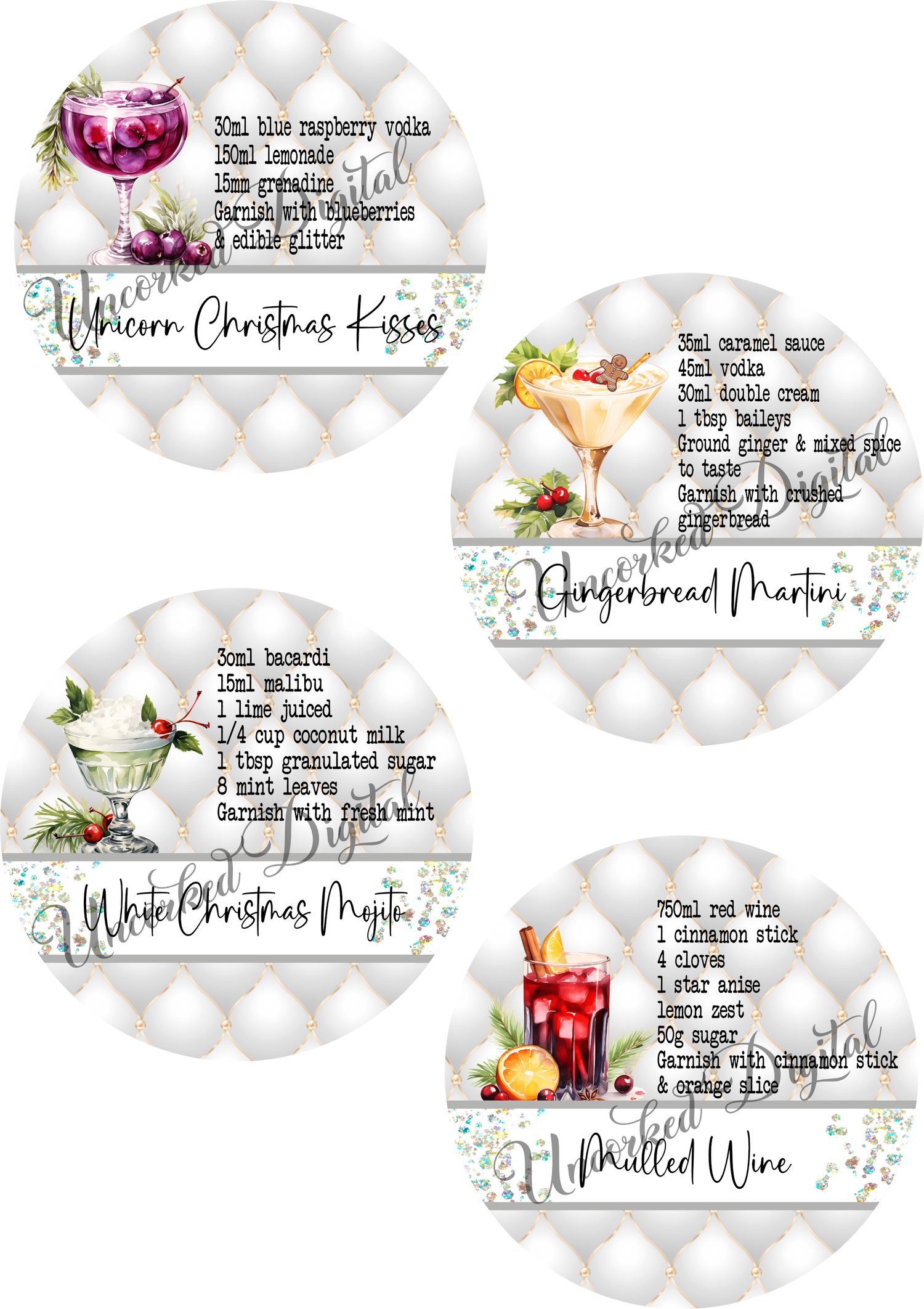 Christmas Cocktail recipe design, these are sized at 100mm but can be sized up or down to suit various sized round blanks.