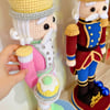 Yarn colors needed: skin color, dark blue, black, maroon, metallic gold, white, light mint green, pink, light purple, metallic silver, light yellow, light blue
