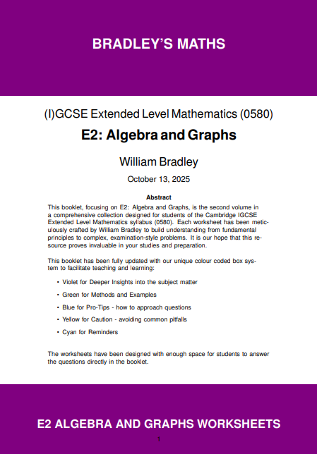 This comprehensive digital resource is designed by William Bradley, a retired International School Head Teacher and Mathematics Specialist. These are not just worksheets; they are a complete pedagogical system covering every single aspect of the Cambridge (0580) Extended Level Algebra syllabus for 2025–2027.