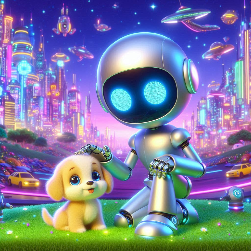 On the dazzling robot planet of Chromatica, young Lila is always eager for adventure. Surrounded by robots of every kind, she’s never seen anything quite like the small, fluffy puppy she discovers one bright morning. With curiosity and kindness, Lila befriends the playful pup she names Spark, and together they embark on a heartwarming journey through the neon-lit streets of Chromatica. As Lila and Spark explore, they show everyone—robot and puppy alike—that friendship can come from the most unexpected places.