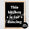 This Kitchen Is For Dancing Funny 70s Psychedelic Wall Art Poster Black White Trendy Retro Typography Printable Decor Digital Download JPEG