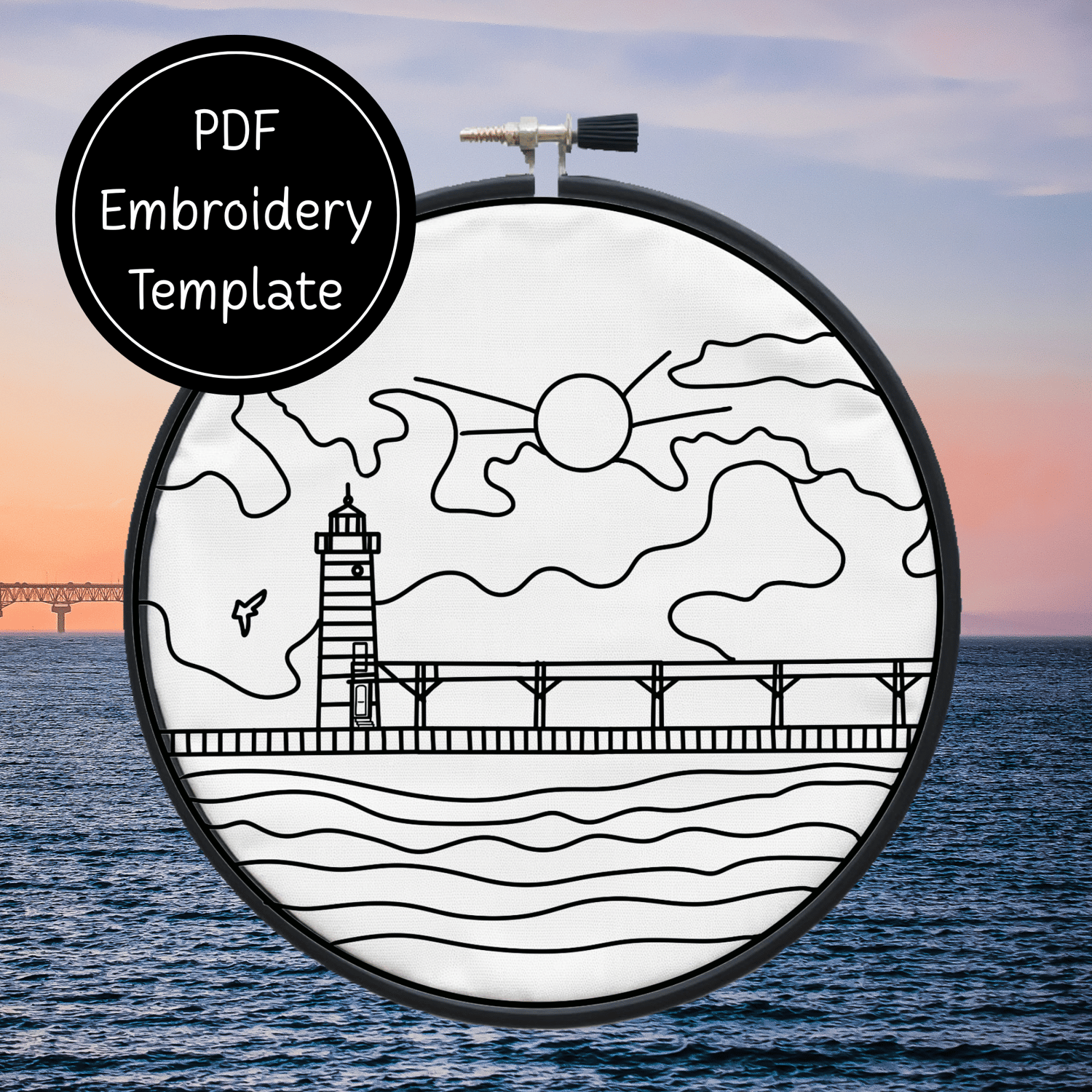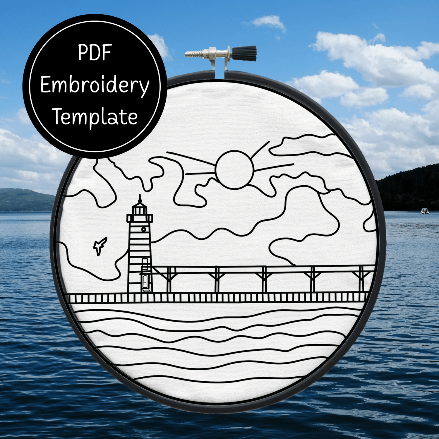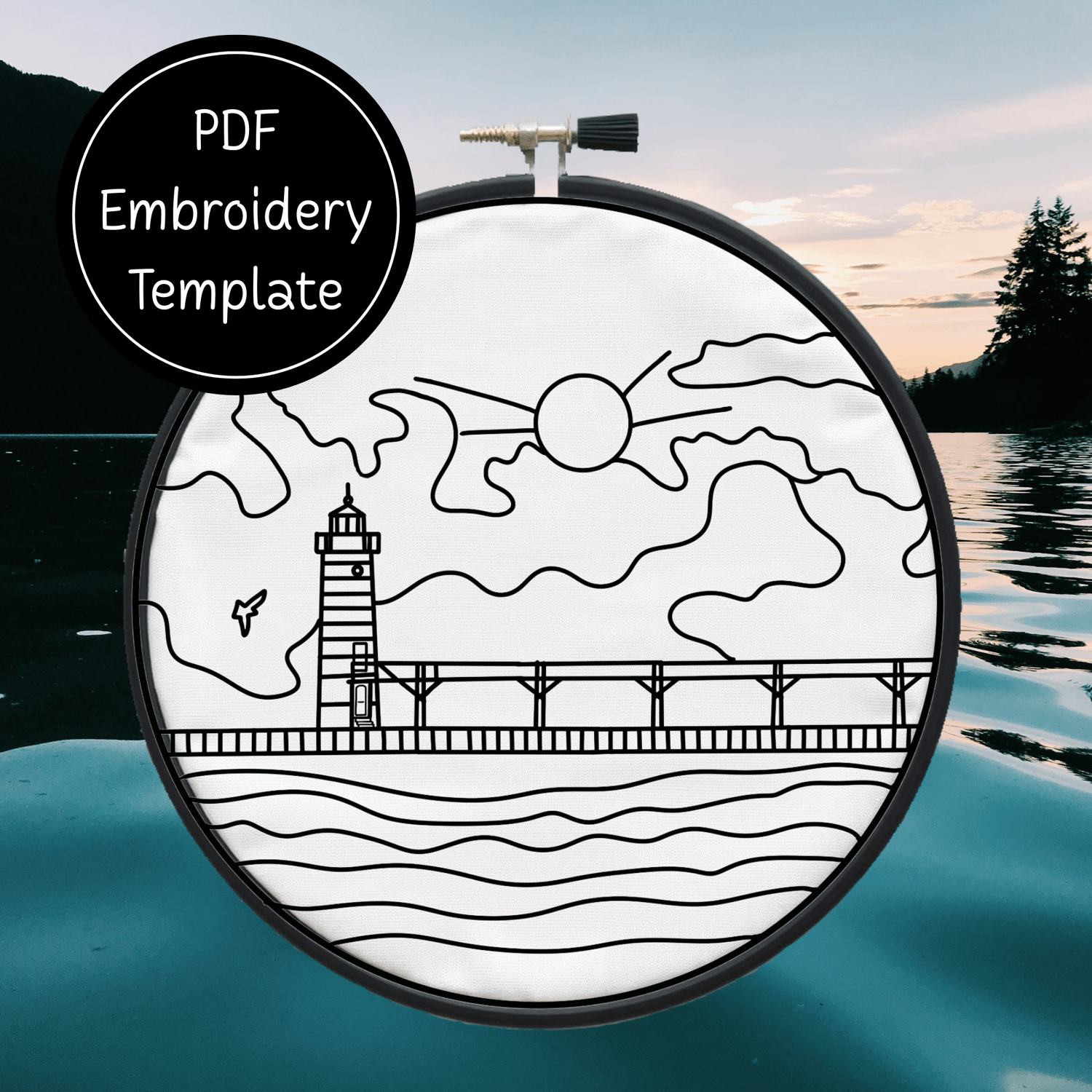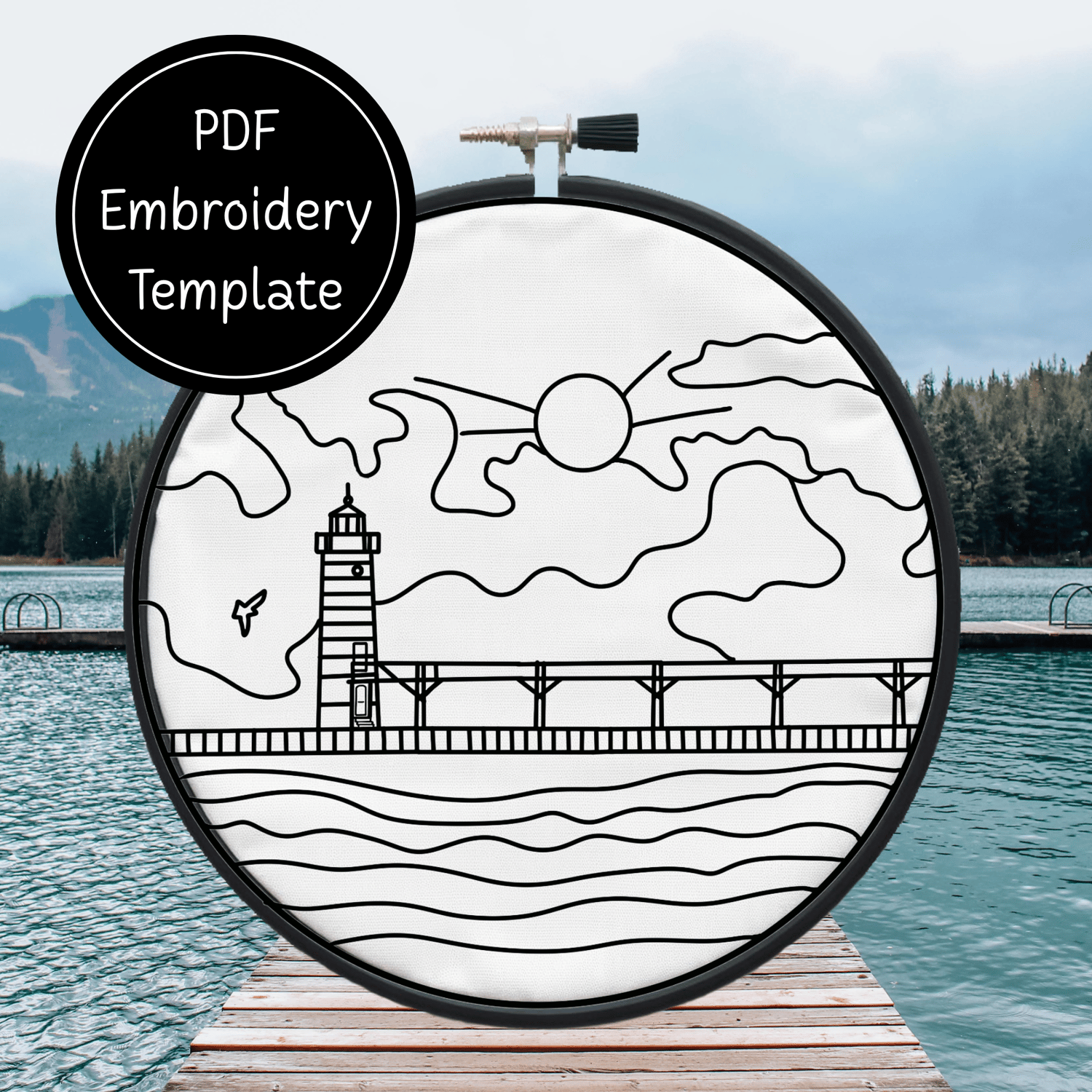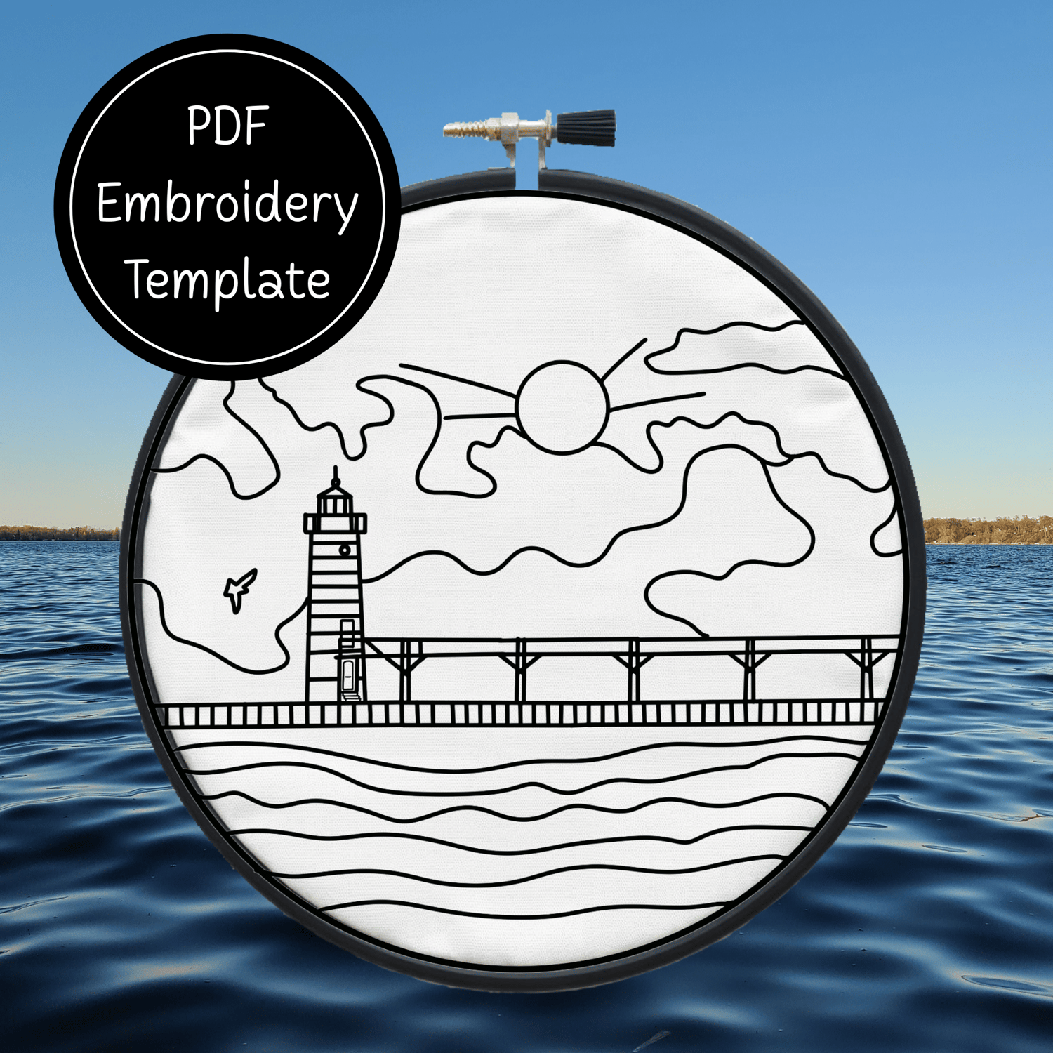 Manistee Lighthouse Embroidery Template PDF - DIY Lighthouse Design For Hand Stitching - Instant Download