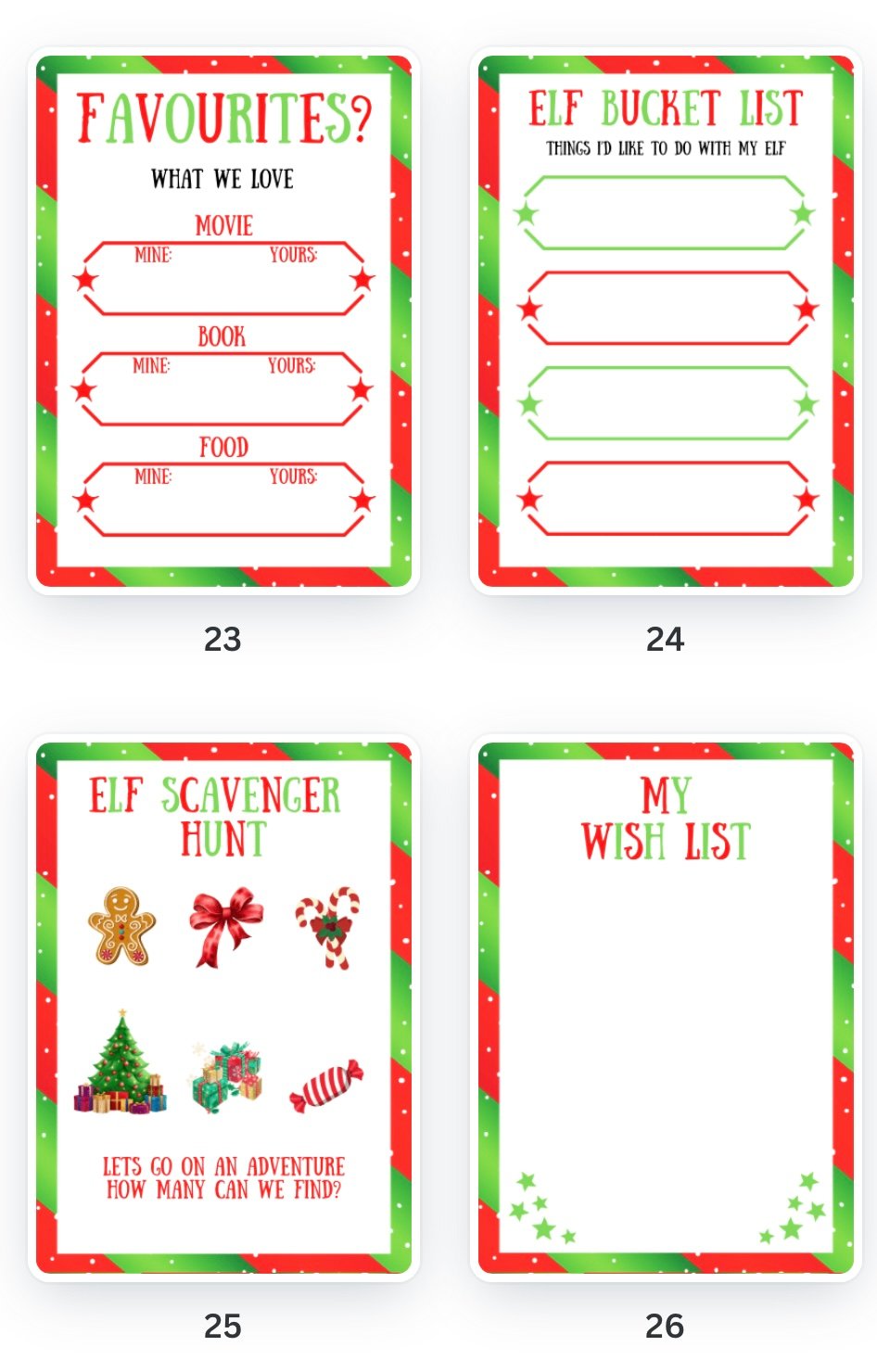 PACKED WITH FUN INTERACTIVE PAGES - ALL ABOUT MY ELF - 24 DAYS TO WRITE DOWN MEMORIES - SCAVENGER HUNT - BUCKET LIST - ELF ADOPTION