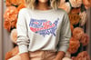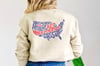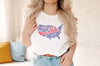 This patriotic design features the words: Patriotic, Fireworks, Stars and Stripes, Independence Day and 4th of July, creatively arranged within the silhouette of the United States.