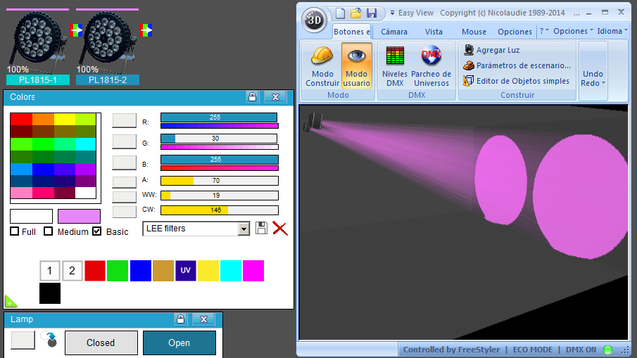 Esta Librería SSL2 está optimizada para trabajar con Magic 3d Easy View. Es decir para ver una representación 3D de las secuencias que estemos realizando con Freestyler, QLC+ o cualquier otro soft que se conecte con Magic 3d.