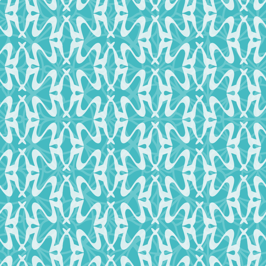 Aqua abstract seamless pattern created with symmetry and small letter R. Curvy lattice vector illustration background.