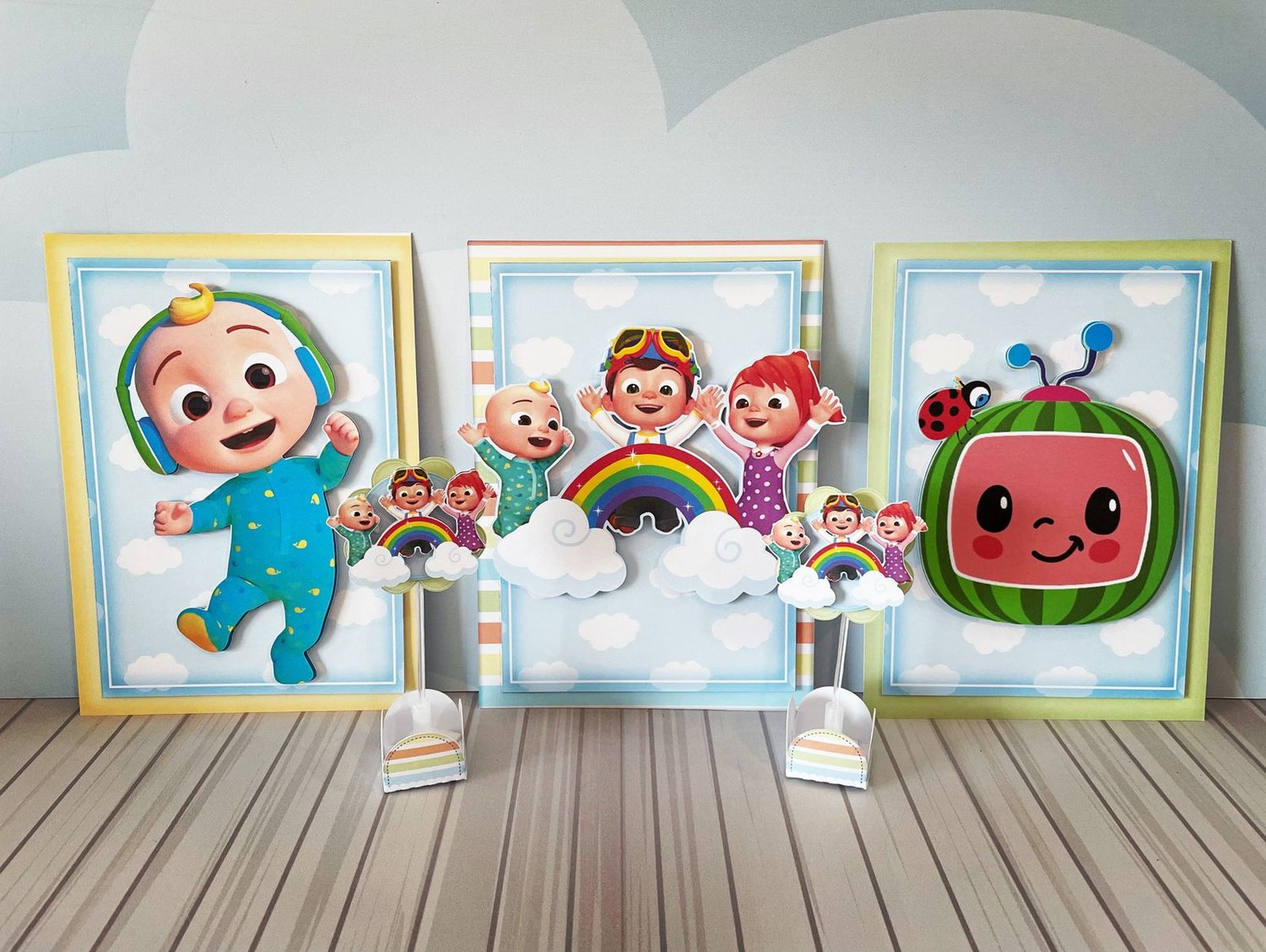 - Decorative Cutouts: Bright and playful elements to enhance your party decor, featuring Coco Melon characters and themes.
