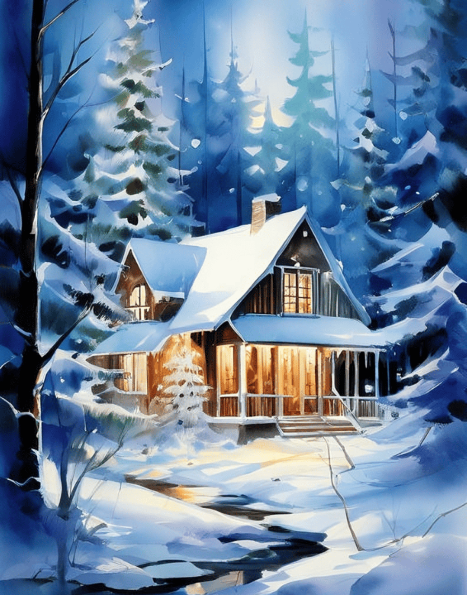 Vintage House, Frozen Forest, Frozen River , River Landscape, Forest landscape, Snow Covered House, Light Of Hope, Top Art, Nostalgic Rural life, Nature, Cool Nature, Beautiful Nature, Sunrise, Natural Landscape, Wall Art, Digital Art.
