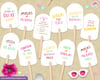 ¡Celebra el verano con estos divertidos polos de helado (paletas) con mensaje para imprimir, y customizables! Esta divertida colección incluye 12 sabores de chocolate y virutas - ¡todos con y sin gafas de sol! He incluido un archivo con una mezcla de diseños por página, y un archivo con un diseño por página (¡por lo que puedes imprimir solo los polos que desees y evitar que los niños pelean!)