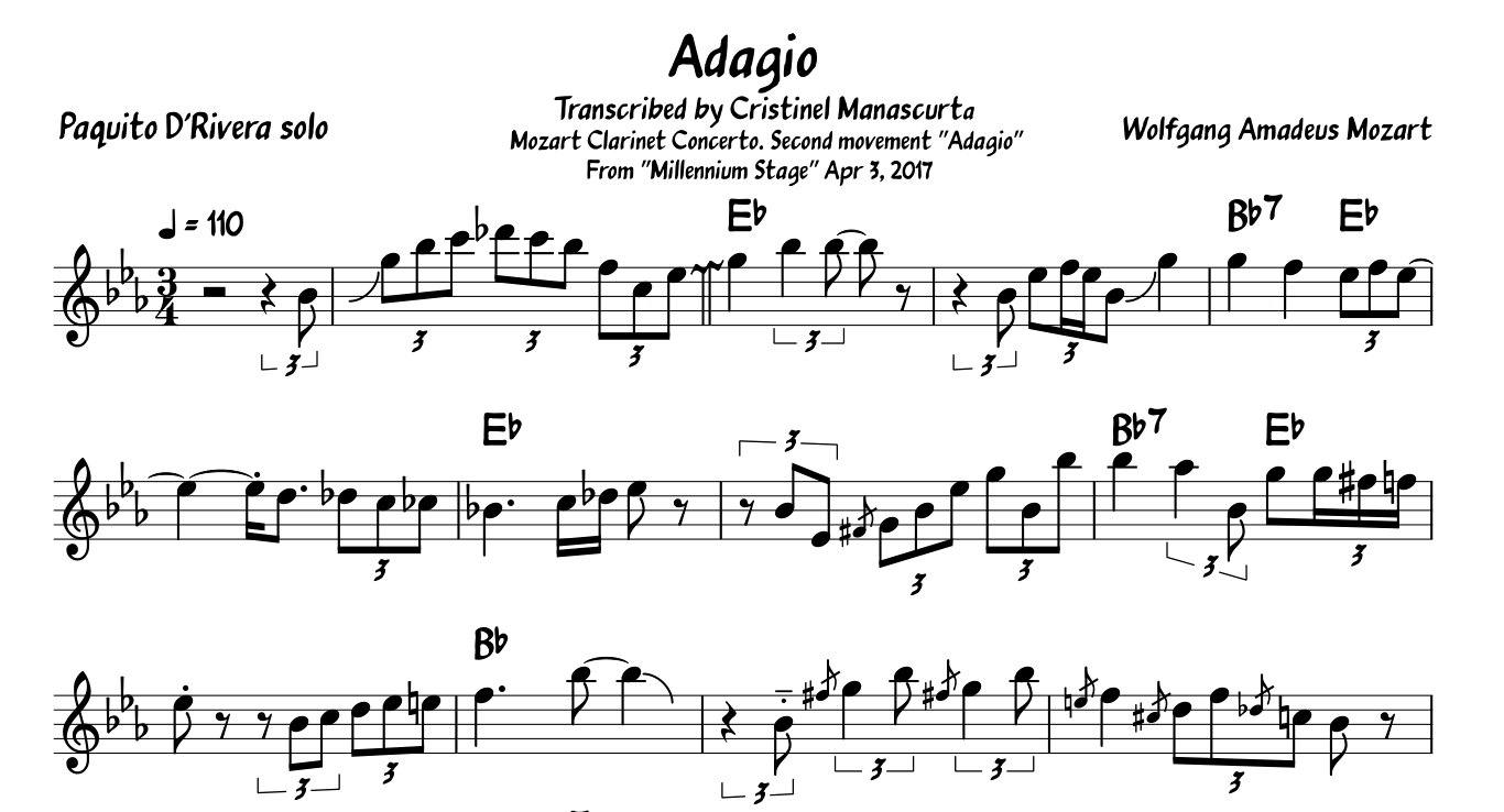 Paquito D'Rivera - Mozart's Adagio, flute or piano