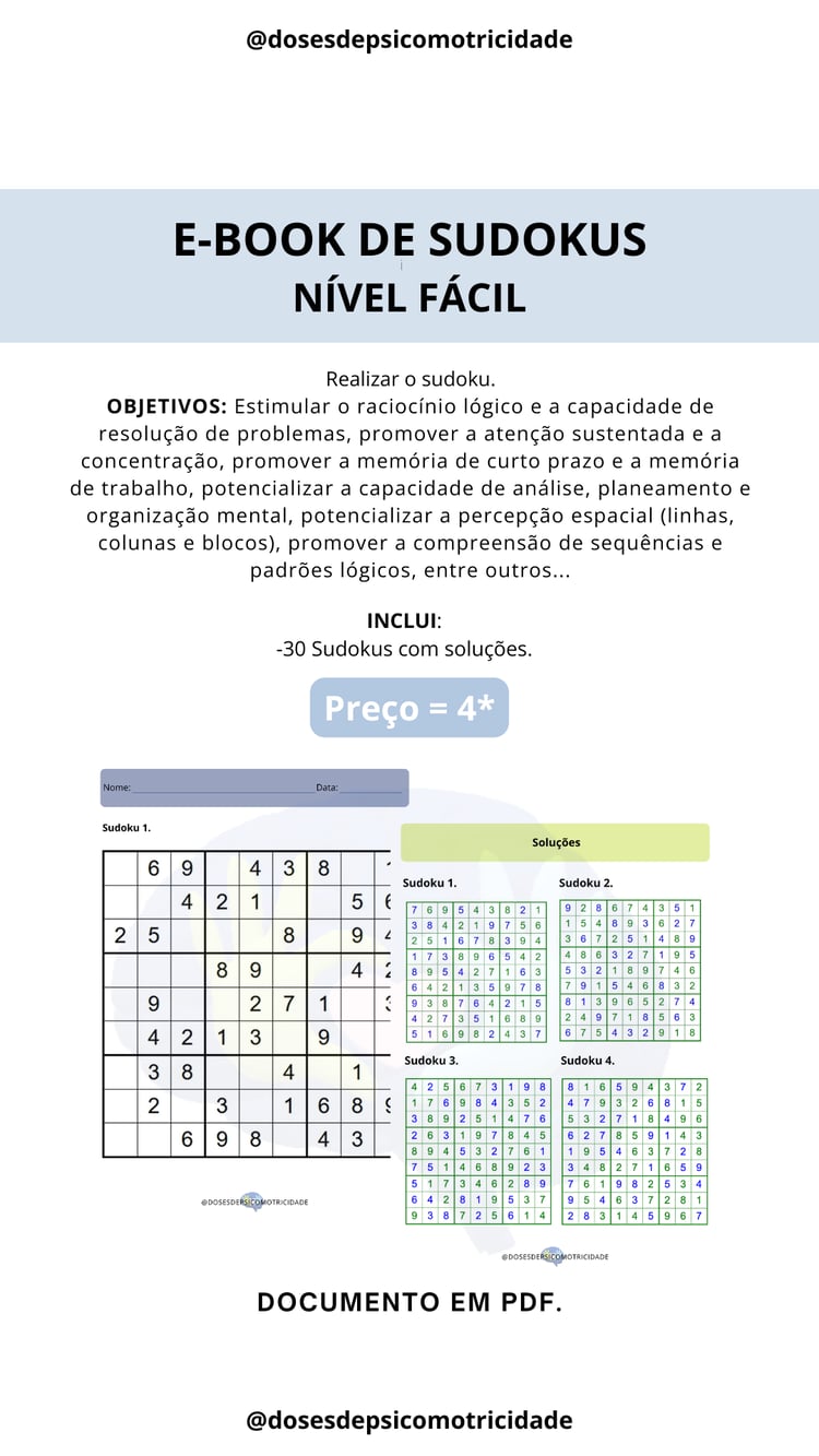 Inclui : 50 Fichas de estimulação cognitiva