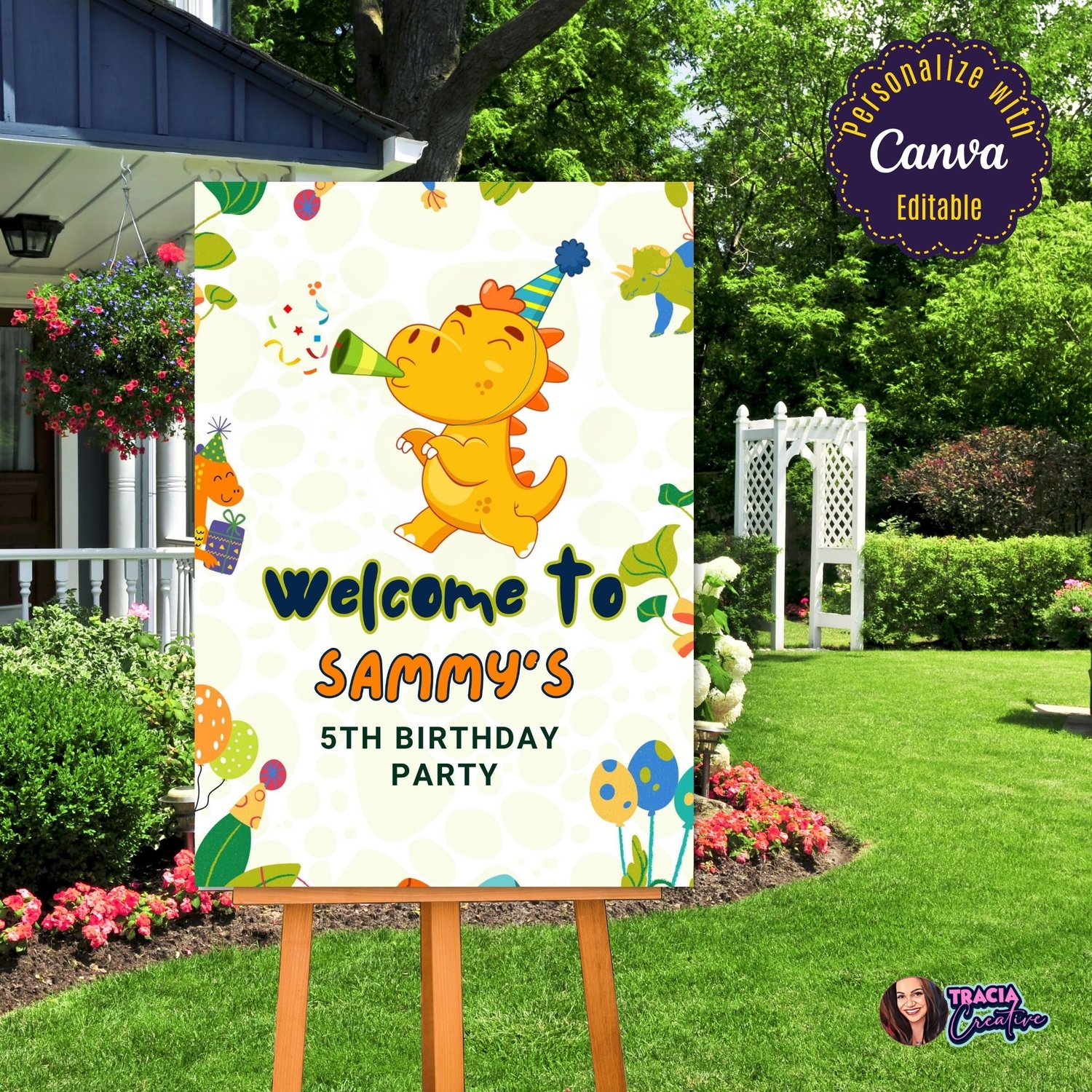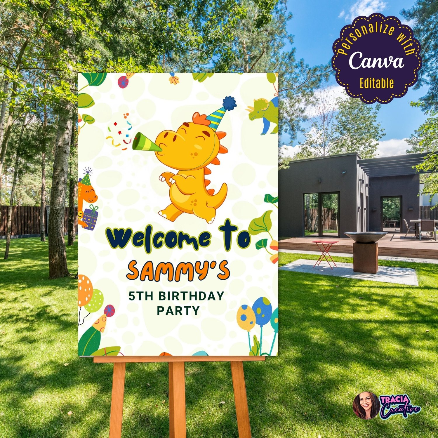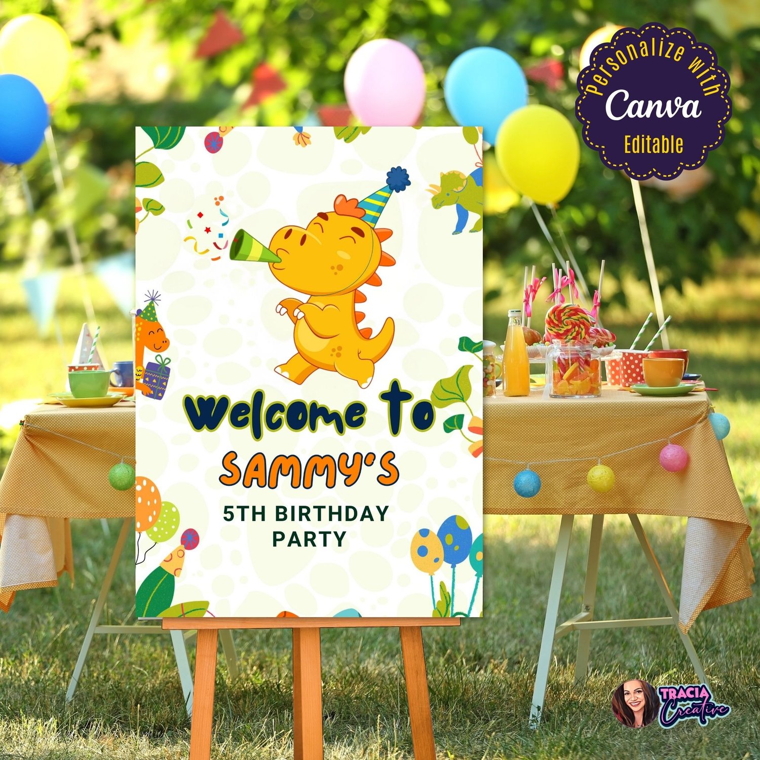 Vibrant Dinosaur Birthday Welcome Sign - Editable Canva Template - Digital Download - Party Printable