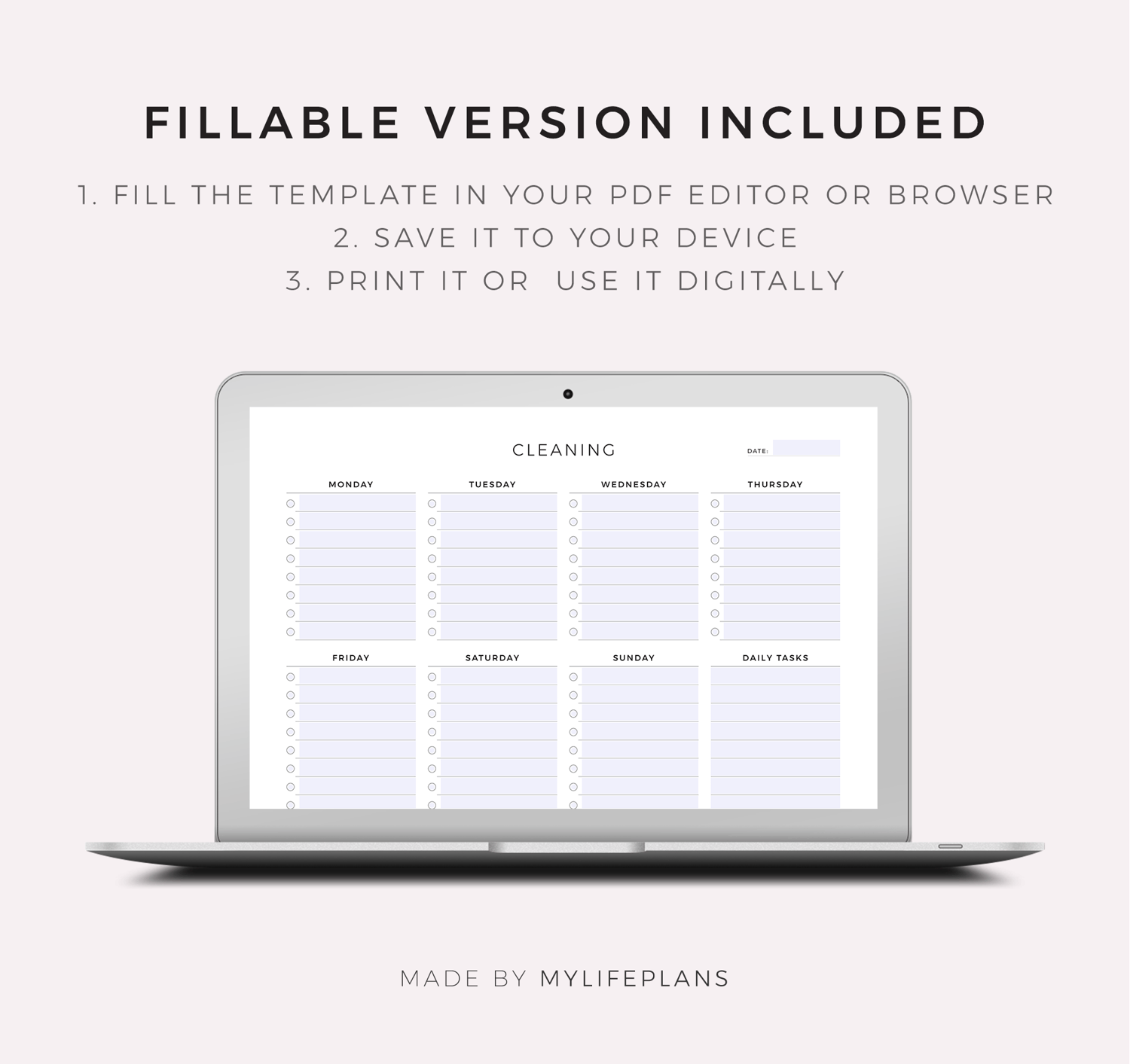 Weekly Cleaning Checklist, Landscape, Printable & Fillable, A4/Letter Size