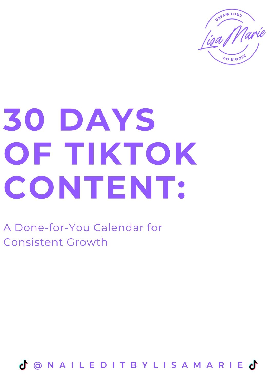30 days of TikTok content is your ultimate shortcut to showing up daily without the stress. This done-for-you content calendar takes the guesswork out of what to post, giving you 30 days of strategic, high impact TikTok video ideas designed to boost your visibility, grow your audience, an drive real results,