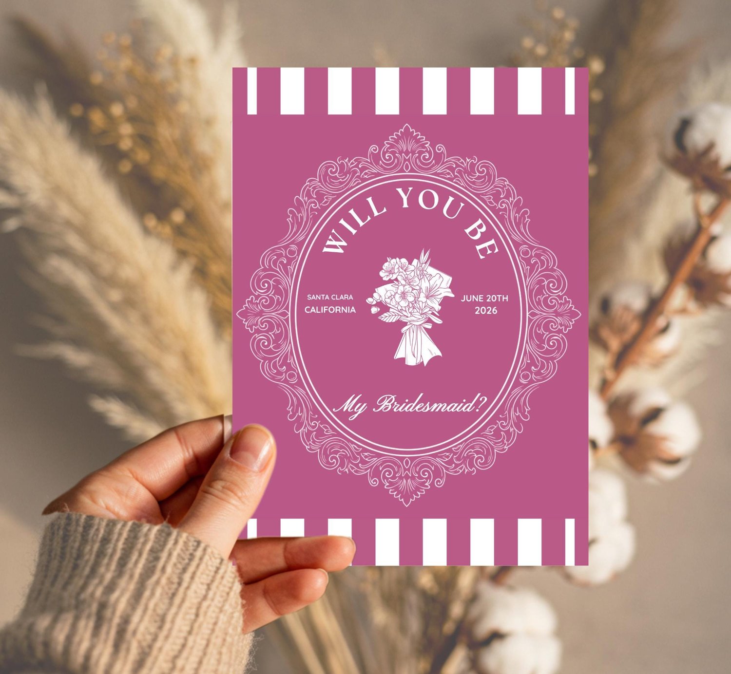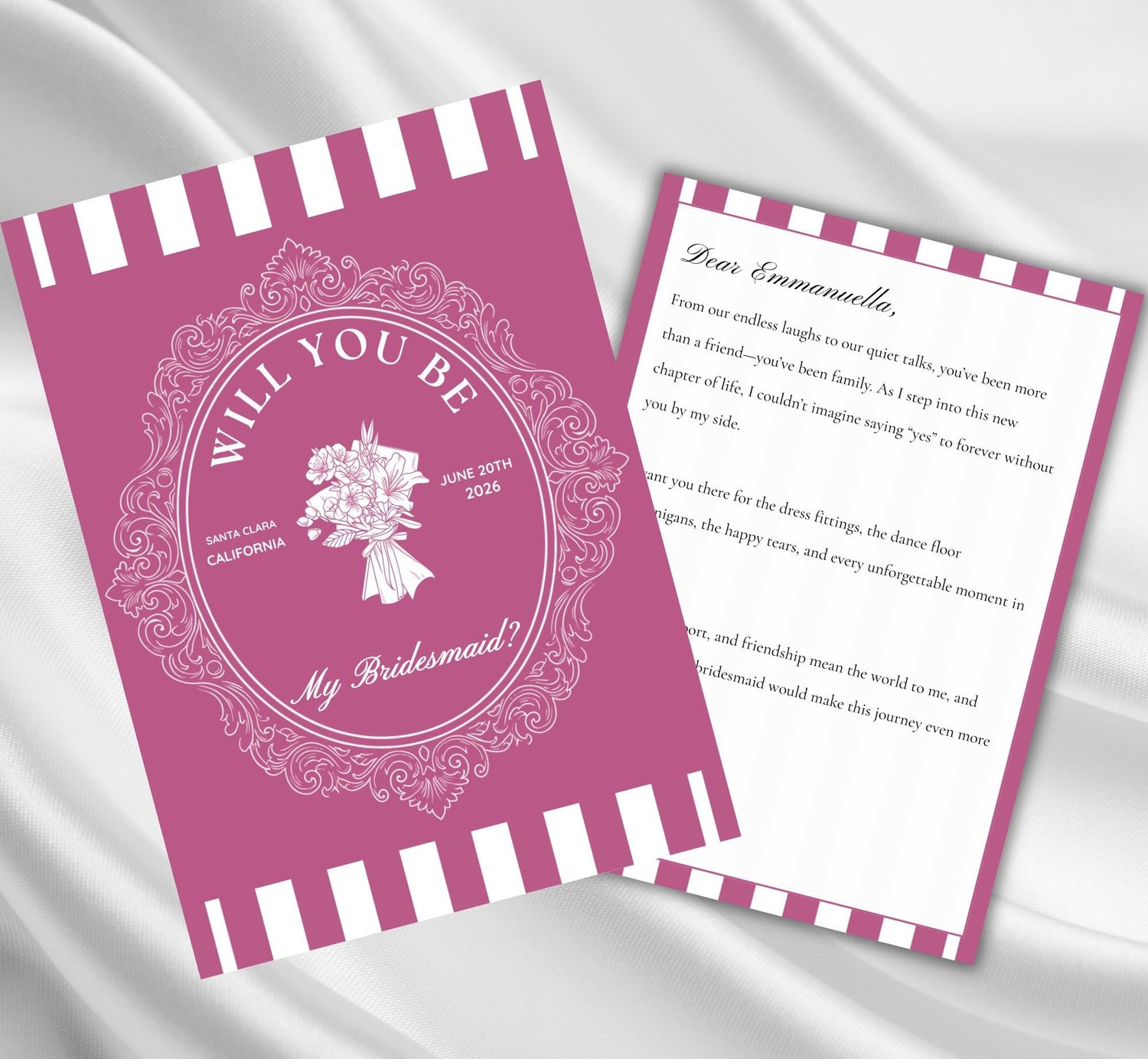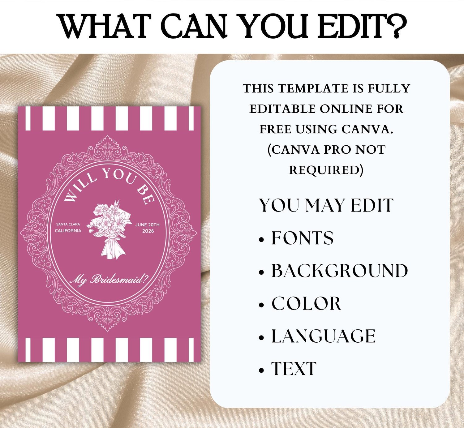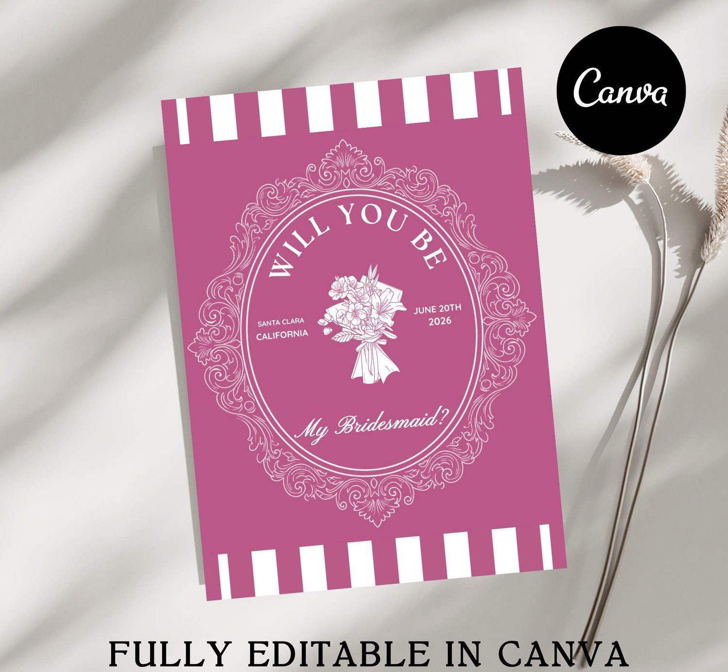 intage Bridesmaid Proposal Card – Editable Canva Template