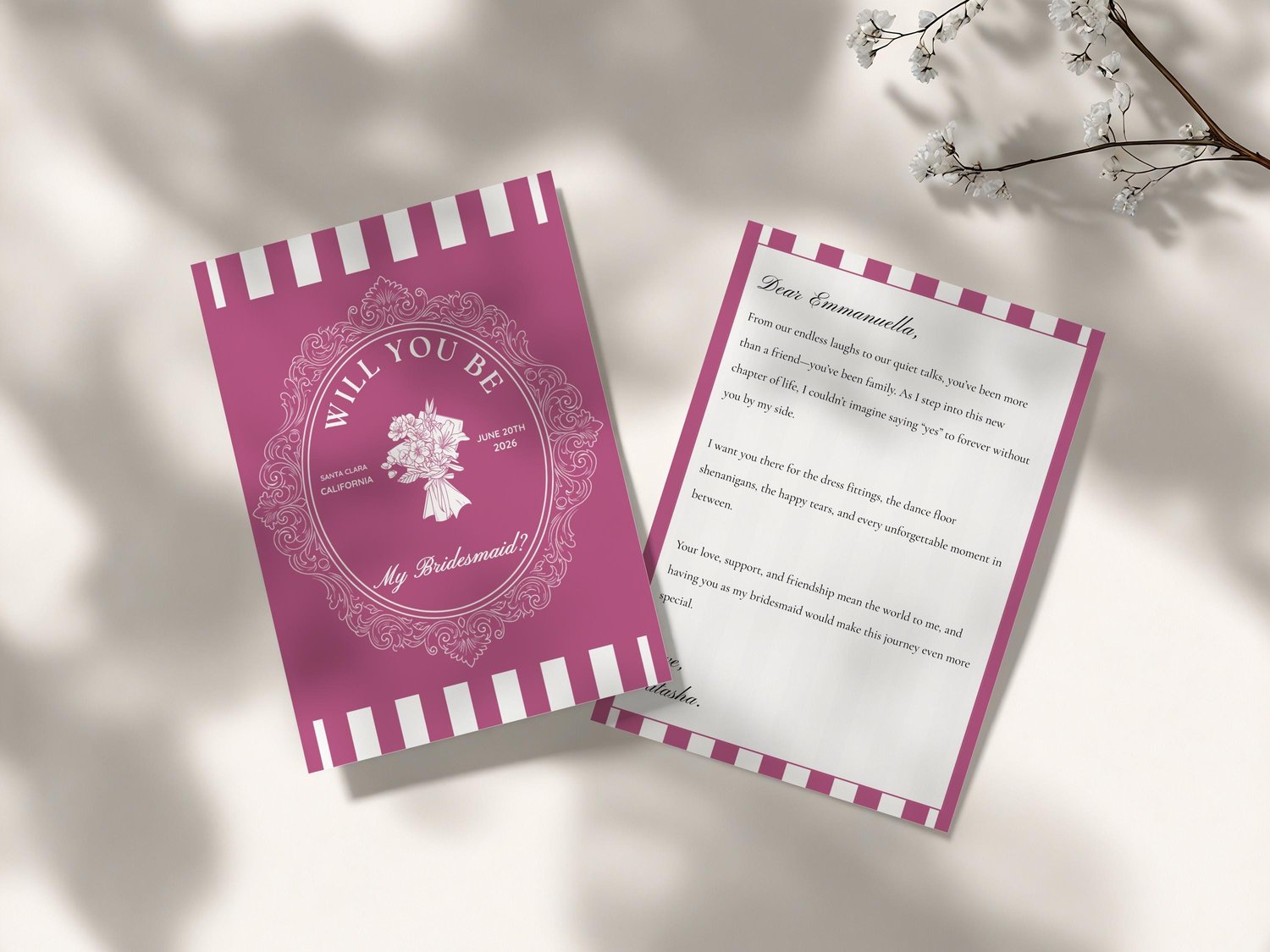Editable Bridesmaid Proposal Card Template (Front & Inside Design)