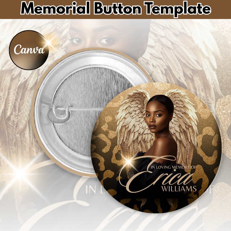 Create a stylish and lasting tribute with this unique animal print memorial button template.