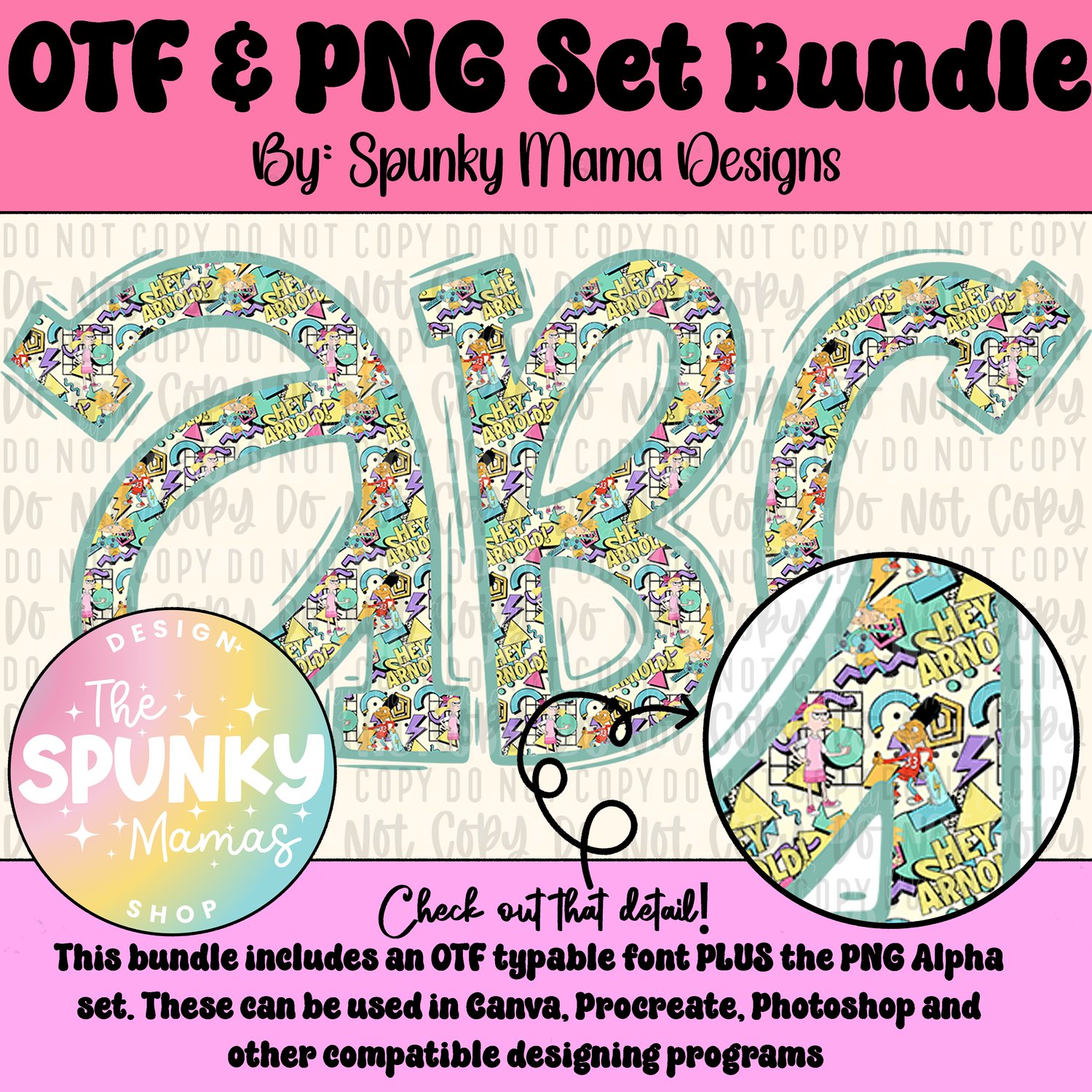 Retro Hey Arnold OTF Font & Digital PNG Alpha Set