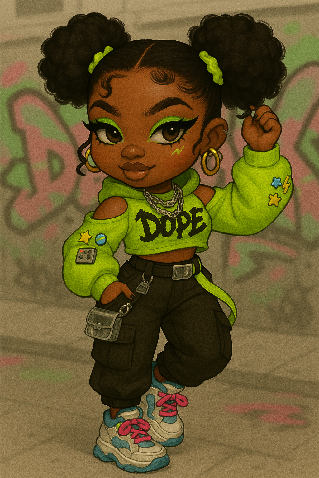 Step into the world of bold digital style with Prompt Muse: Streetwear Edition — a curated collection of 20 premium AI prompts designed to help you create melanin-rich, curvy chibi characters with flair, edge, and streetwear attitude.