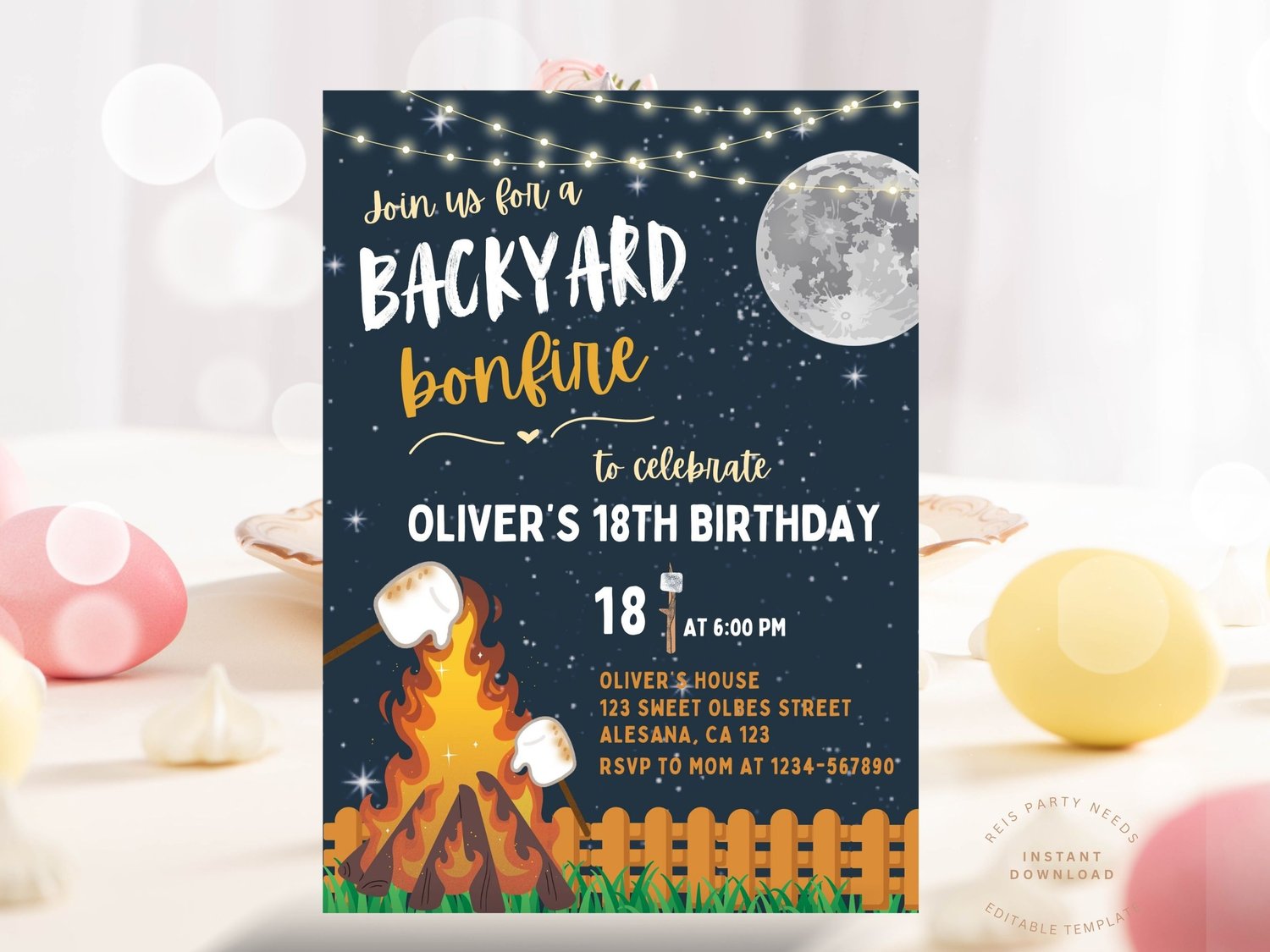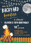 Backyard Bonfire Birthday Invitation, Backyard Bonfire Invitation, Outdoor Bonfire Bash Invite, Campfire Birthday Party, Bonfire & S'mores
